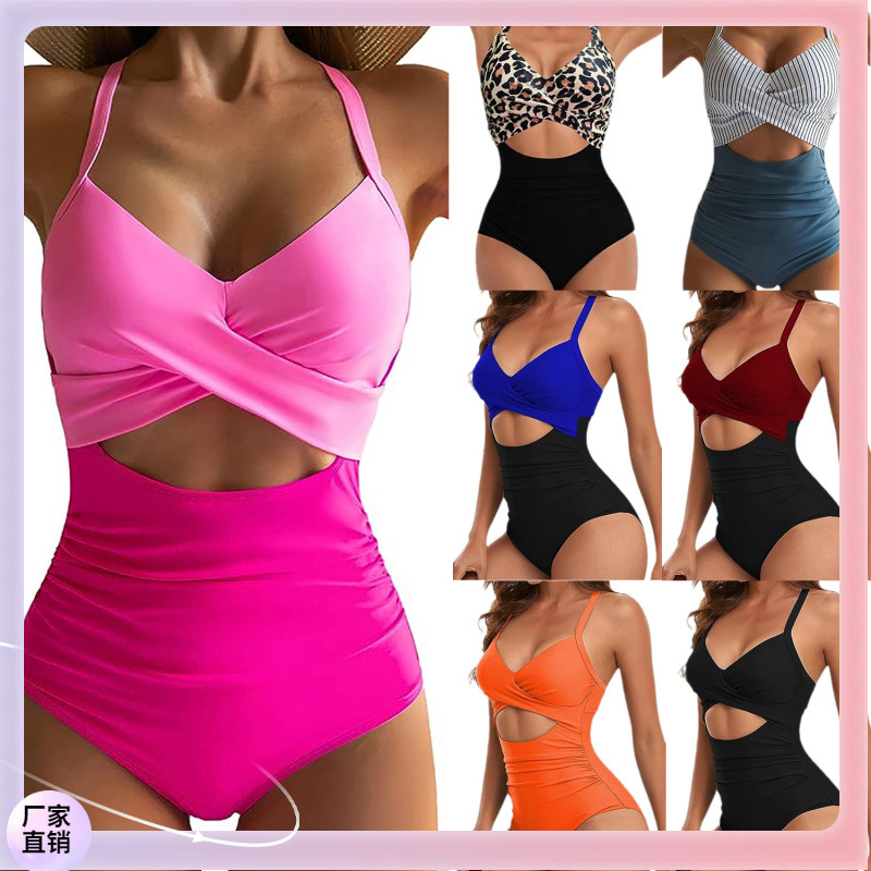 ✅아마존 원피스 수영복 여성 유럽과 미국의 백리스 스티칭 섹시한 프린트 수영복 크로스 레오파드 무늬 스트랩 Biji스토어 가기