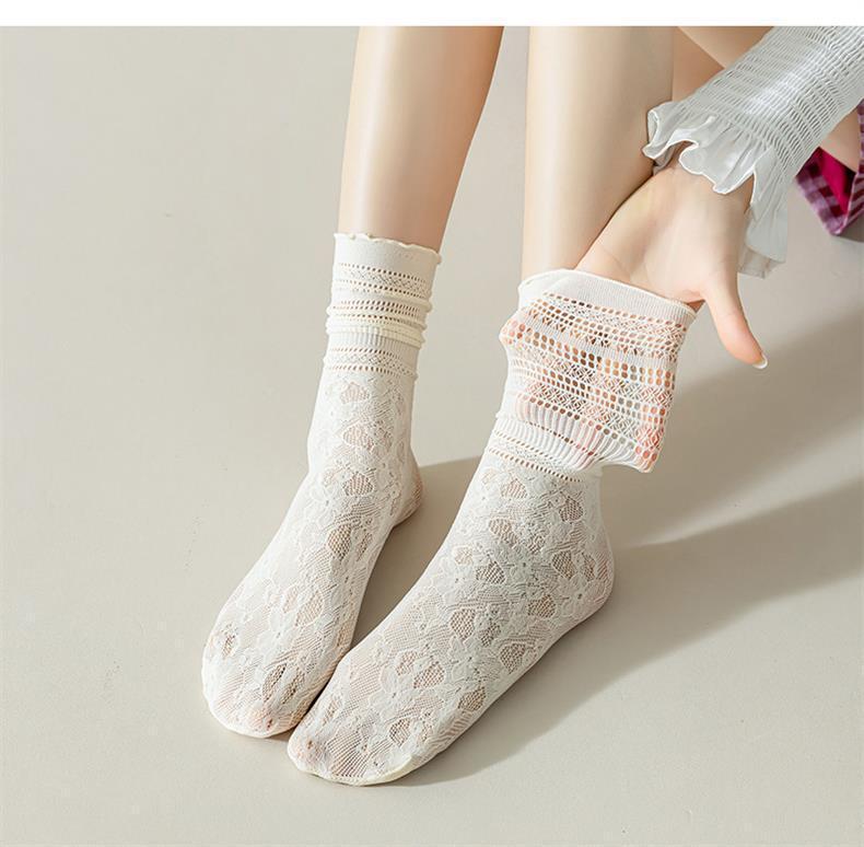 흰색 양말 여성 더미 양말 여름 얇은 레이스 여름 통기성 메쉬 중공 나무 귀 양말스토어 가기