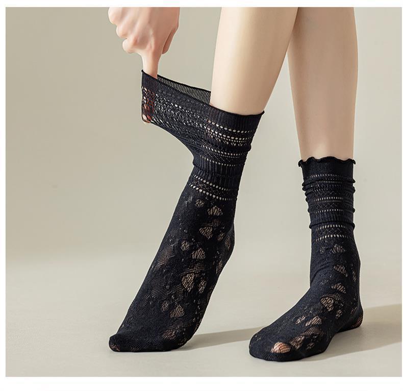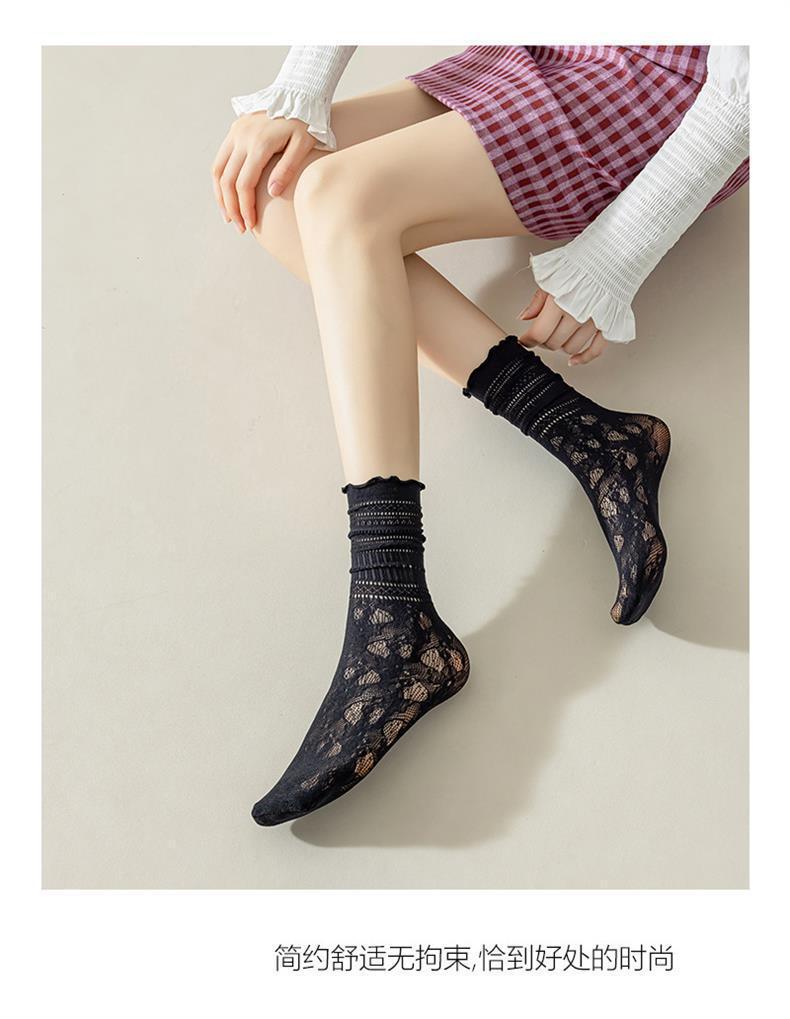 흰색 양말 여성 더미 양말 여름 얇은 레이스 여름 통기성 메쉬 중공 나무 귀 양말