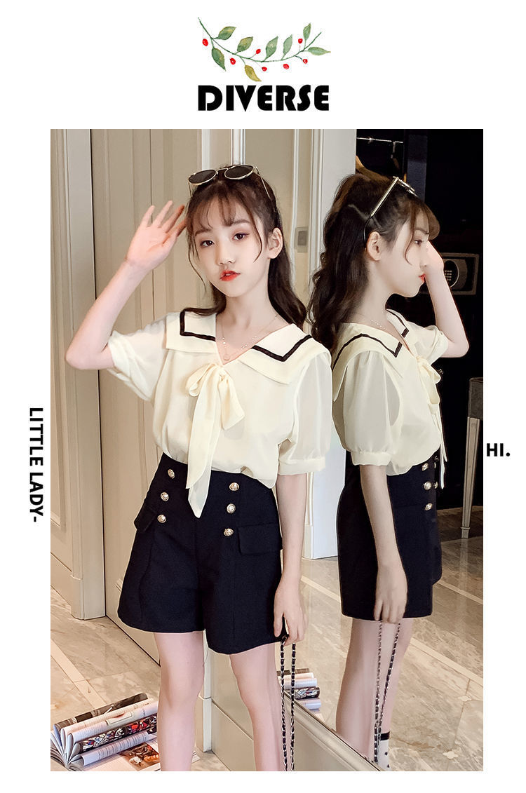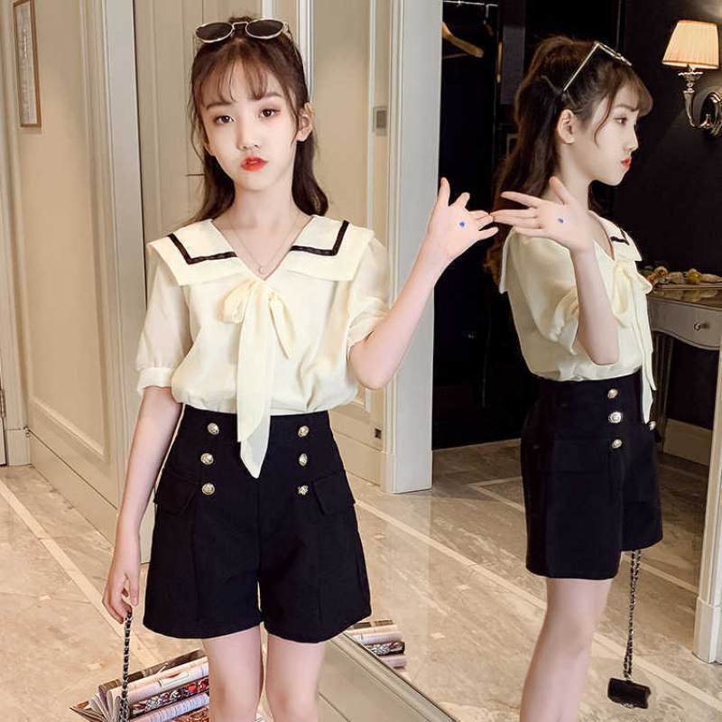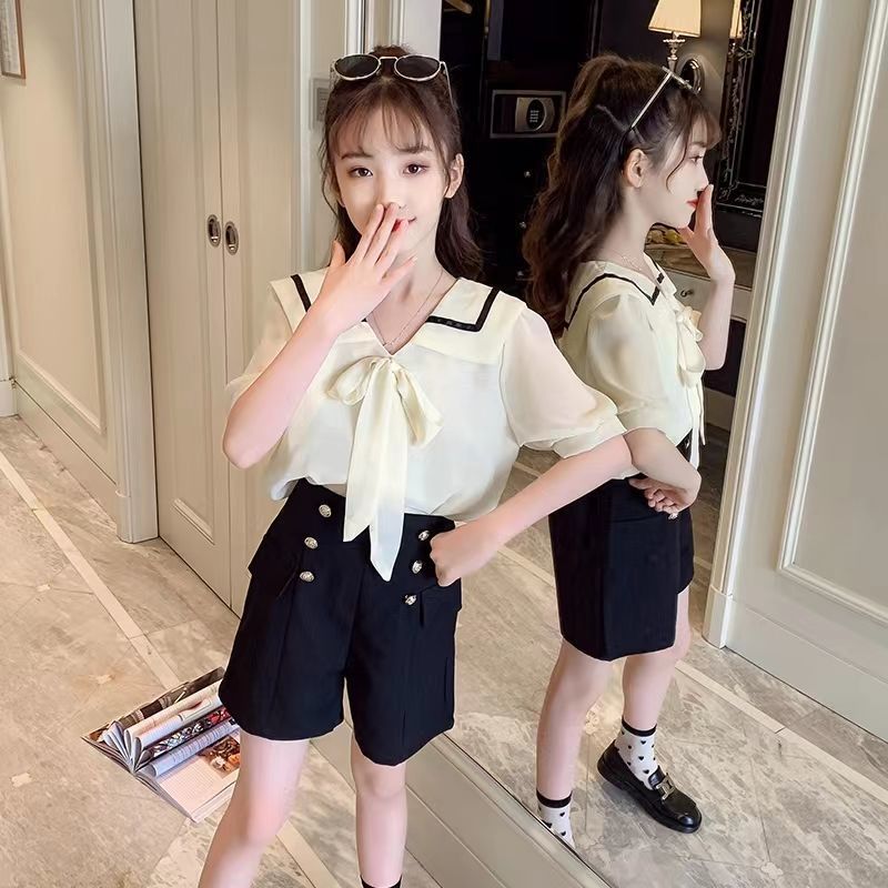 [1459명] 2025년 신작 여아 여름 정장 여름 큰 아동복 한국식 패셔너블 쉬폰 여아