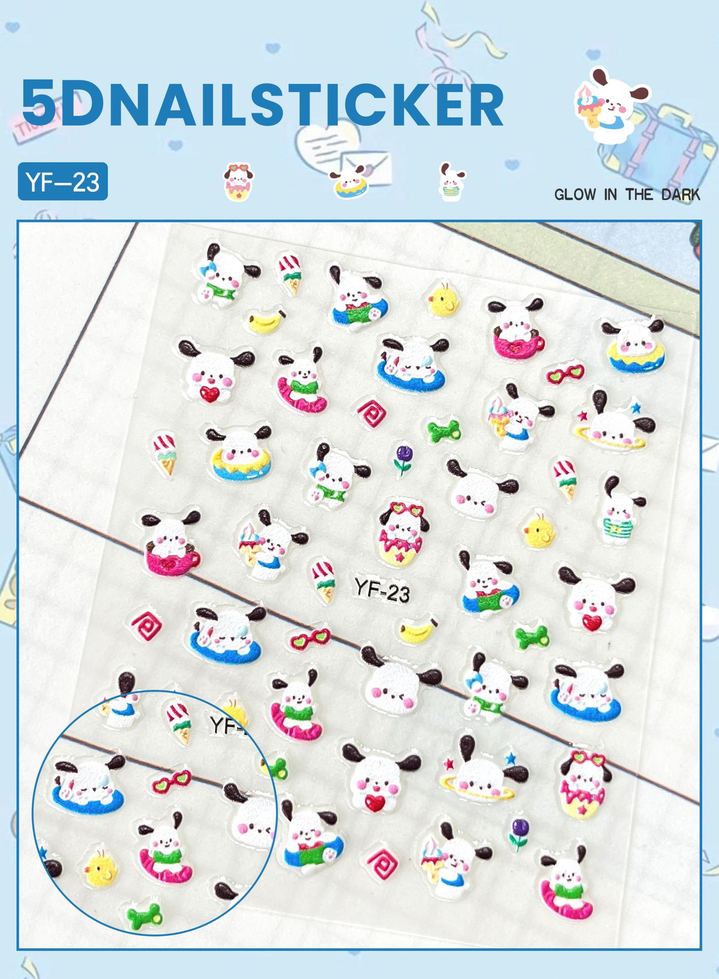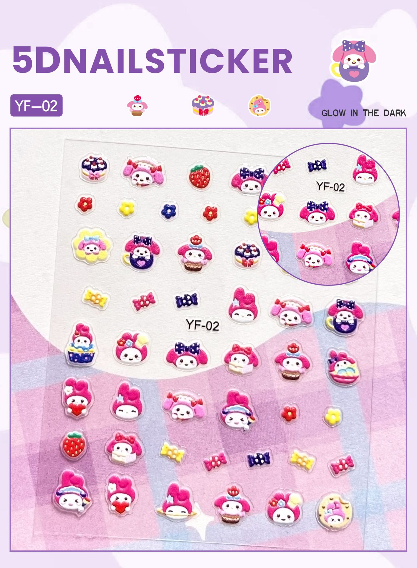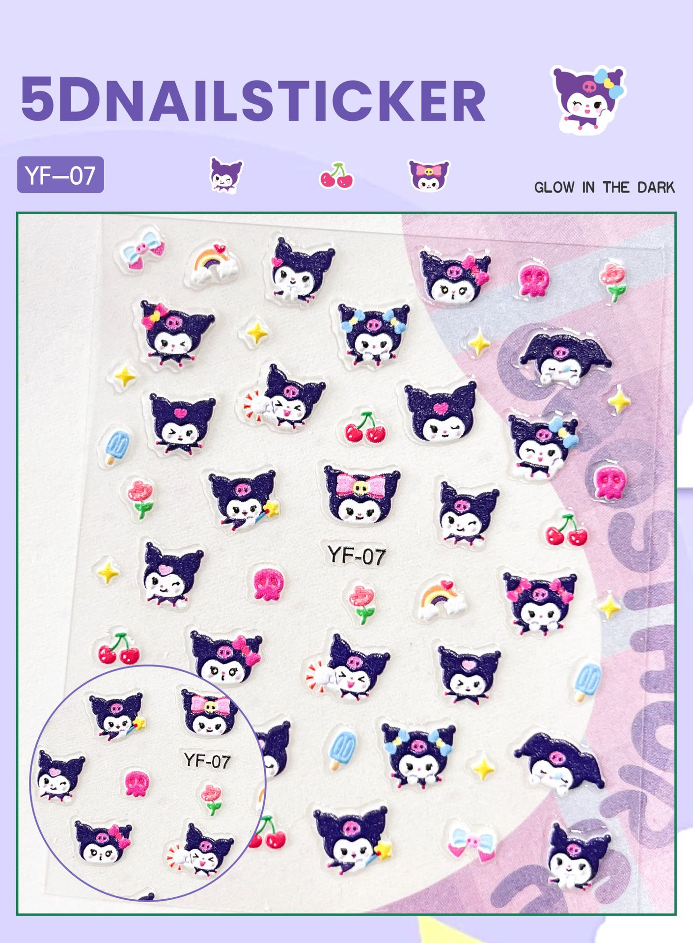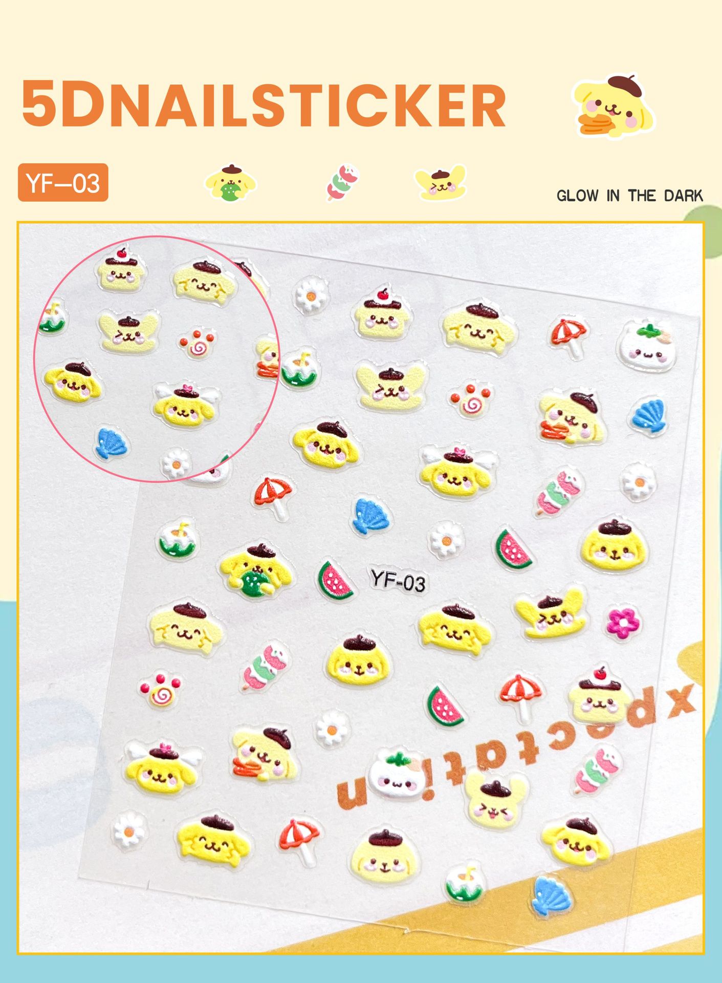 Sanrio Culomi 5D 빛나는 미니 네일 스티커 어린이 소녀 Merlot Patchia 개 아기 네일 스티커