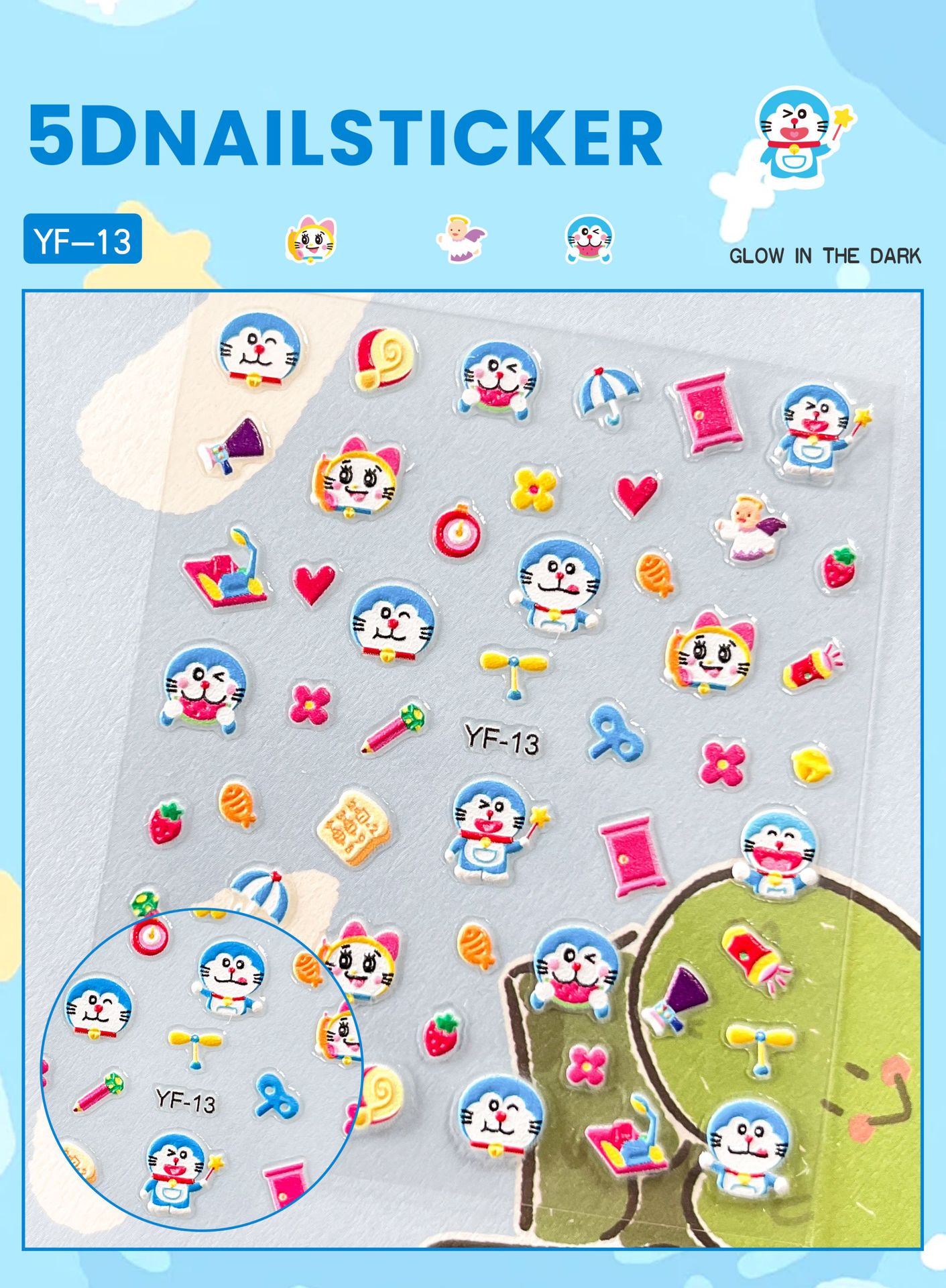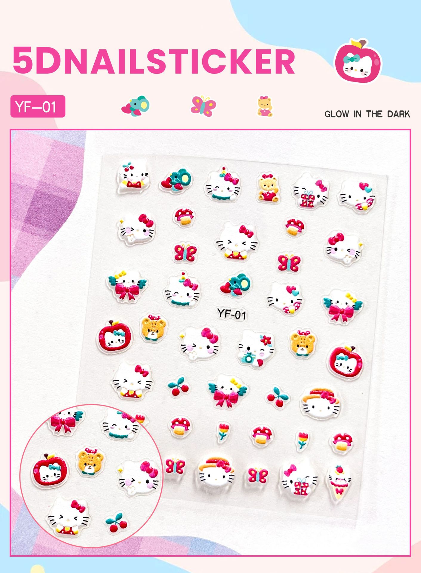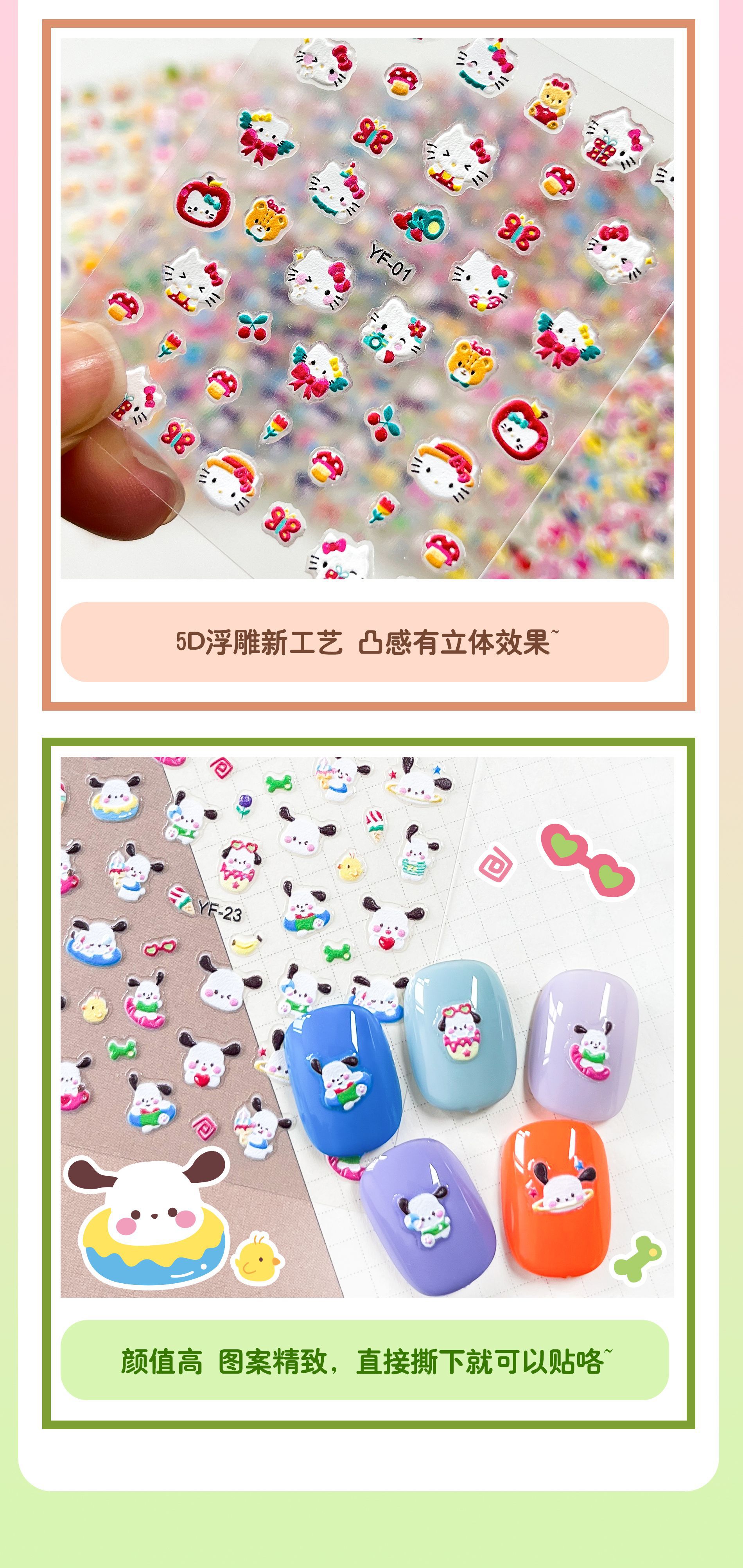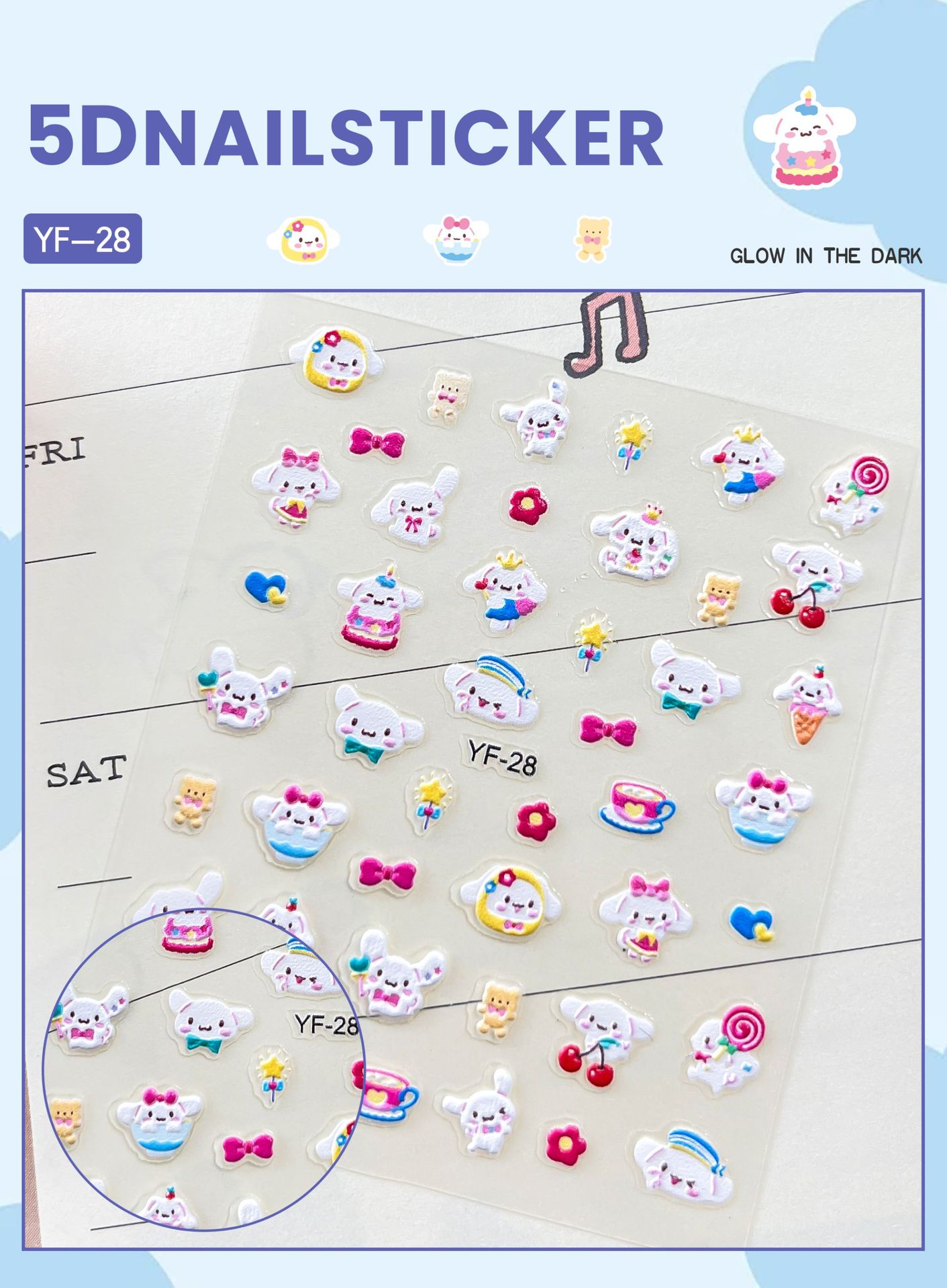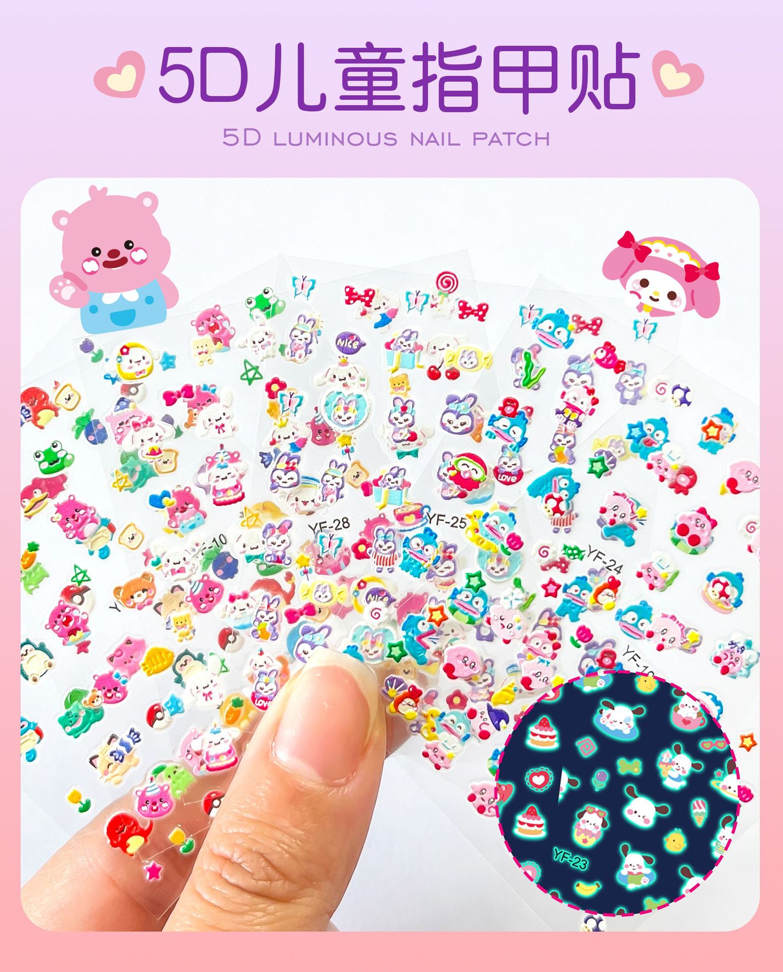 Sanrio Culomi 5D 빛나는 미니 네일 스티커 어린이 소녀 Merlot Patchia 개 아기 네일 스티커