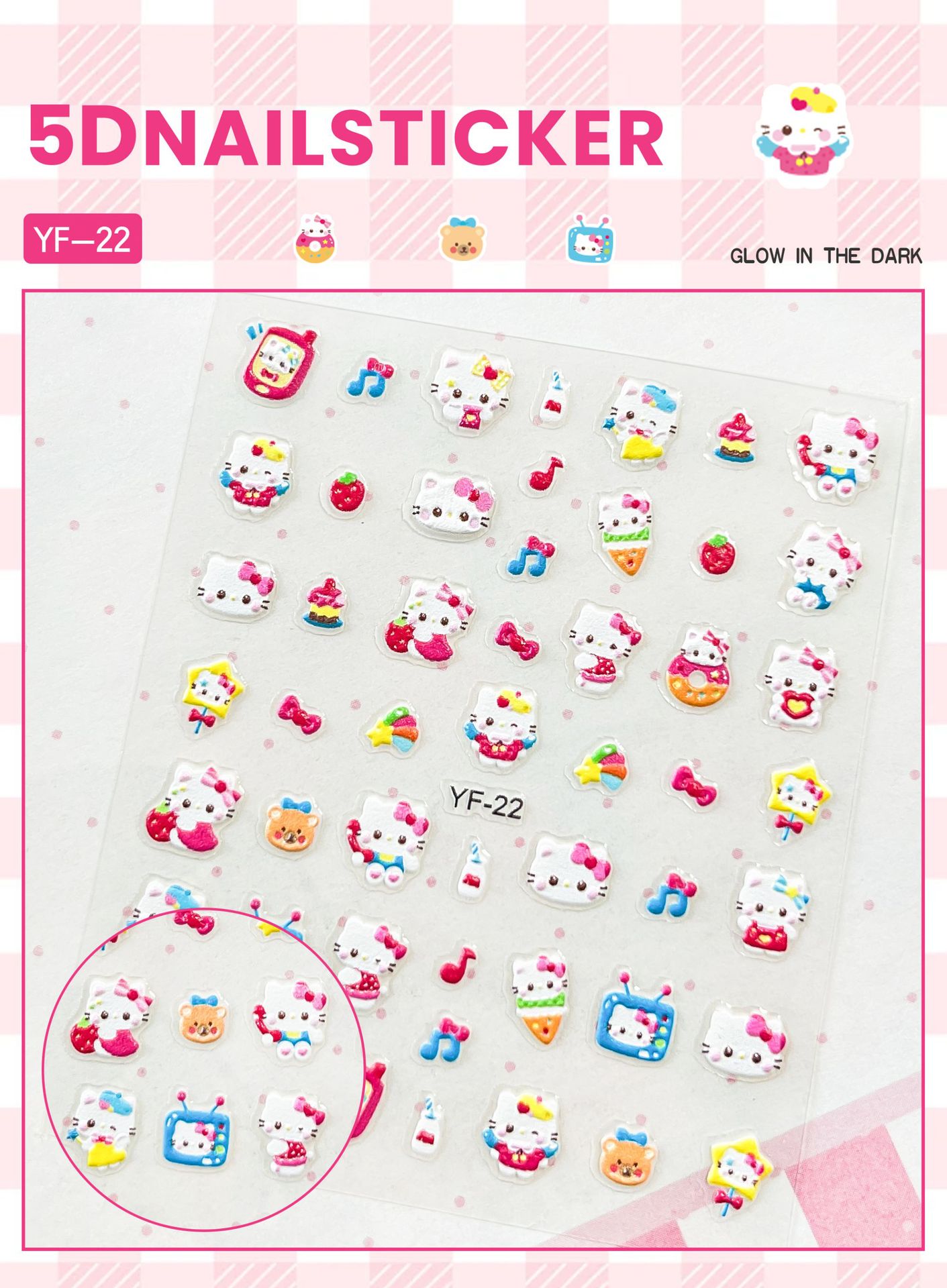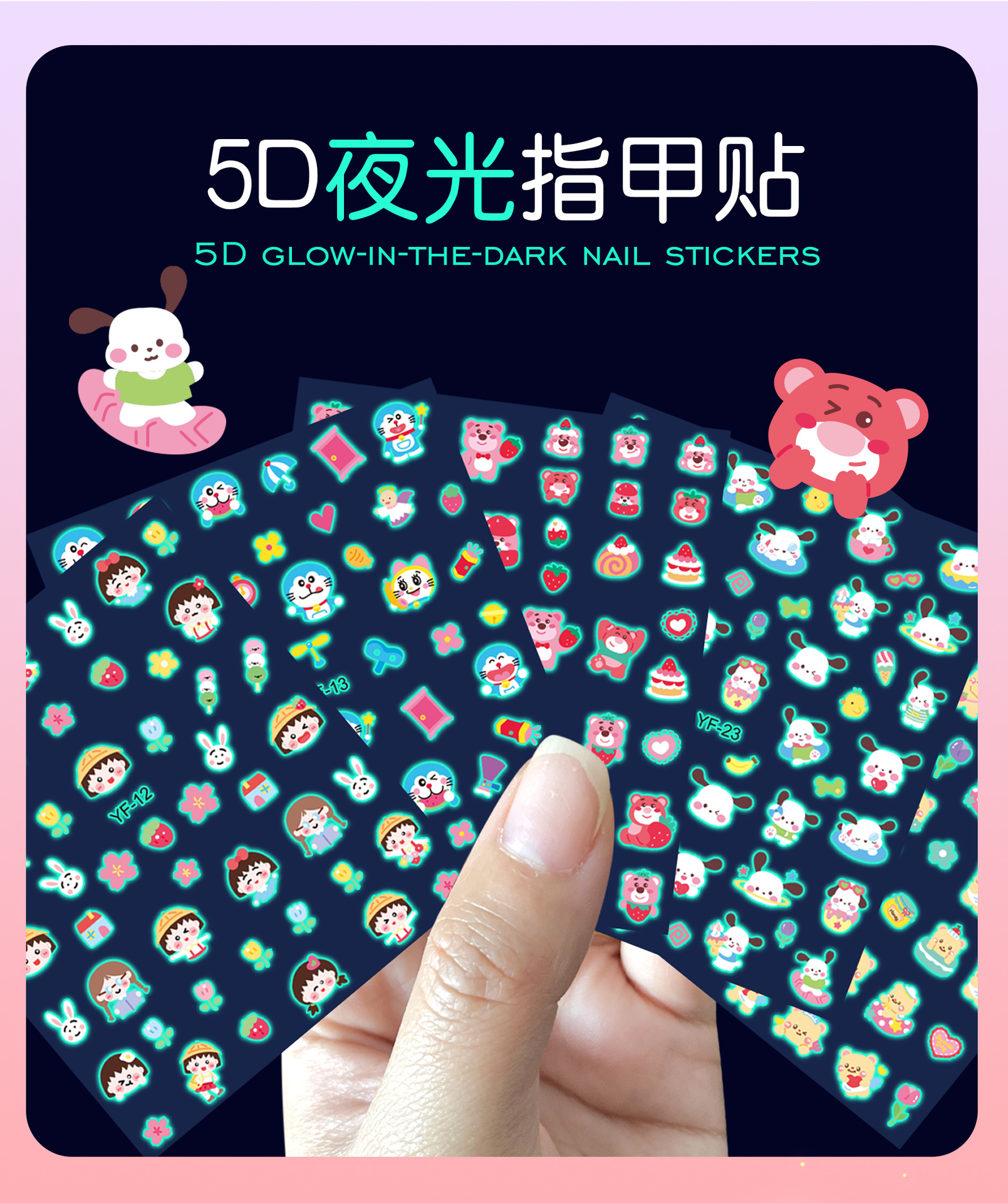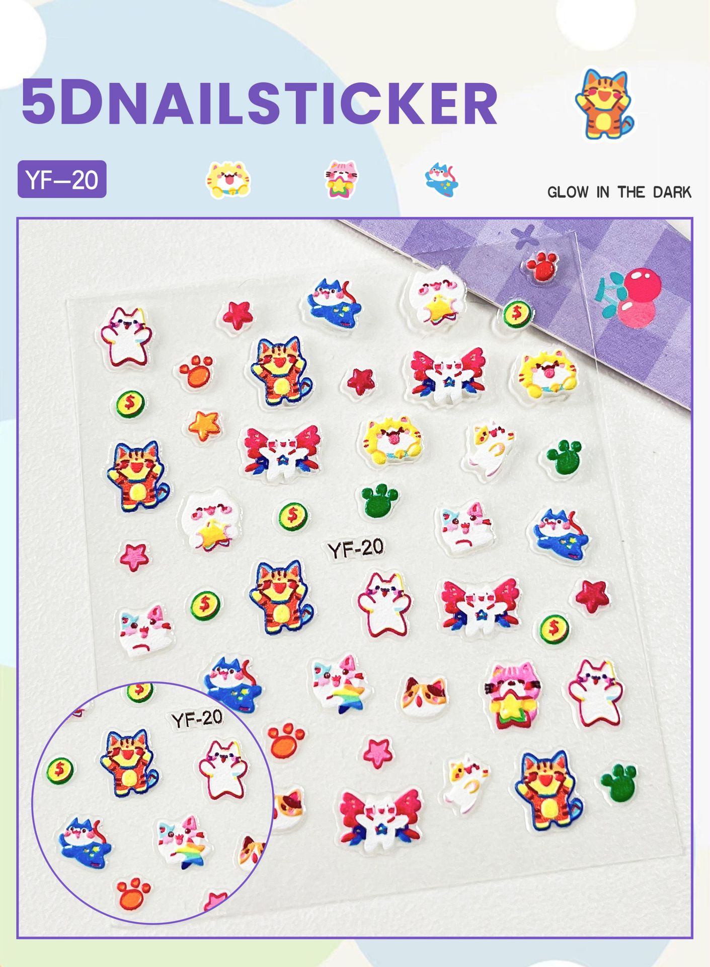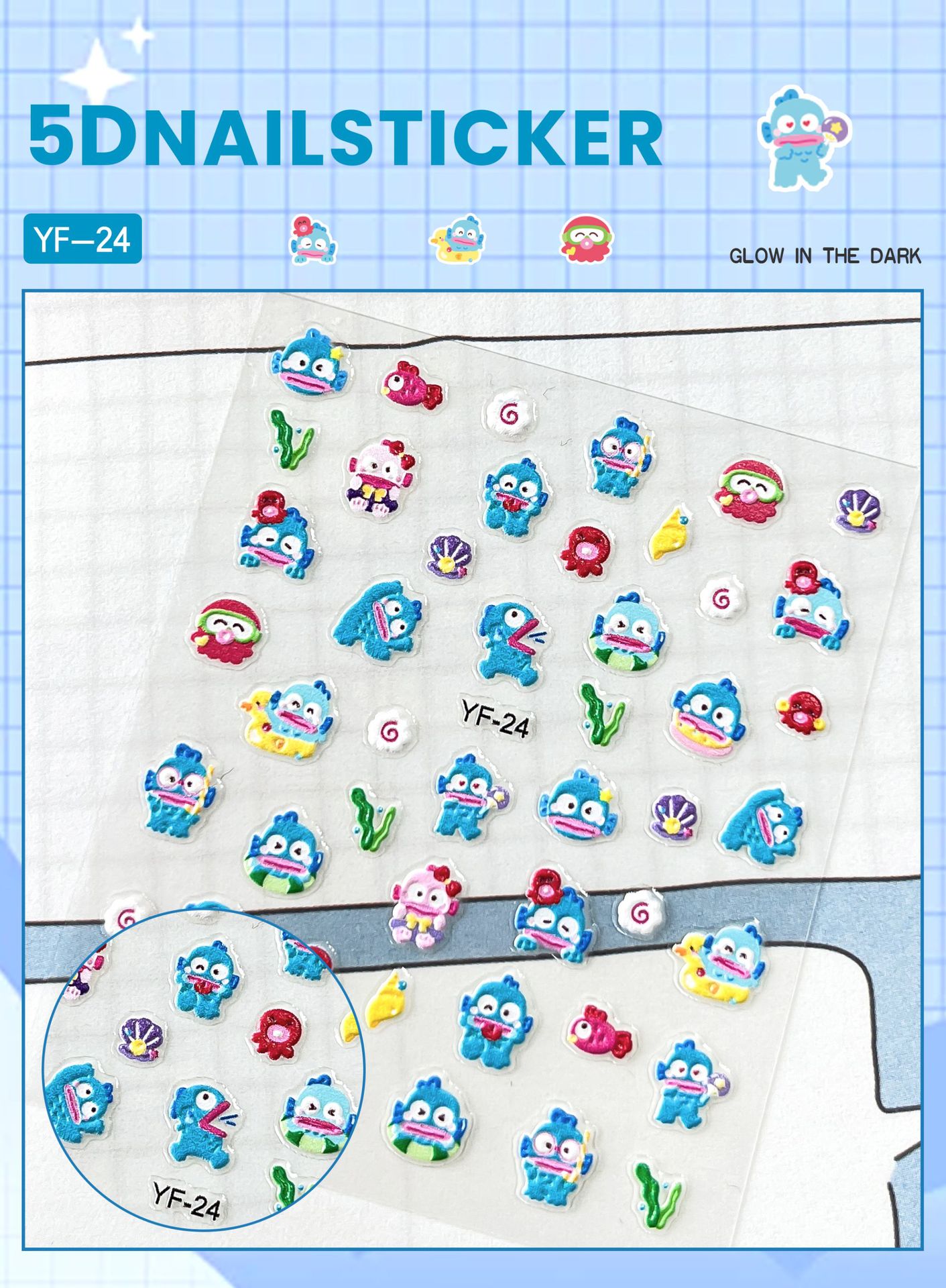 Sanrio Culomi 5D 빛나는 미니 네일 스티커 어린이 소녀 Merlot Patchia 개 아기 네일 스티커