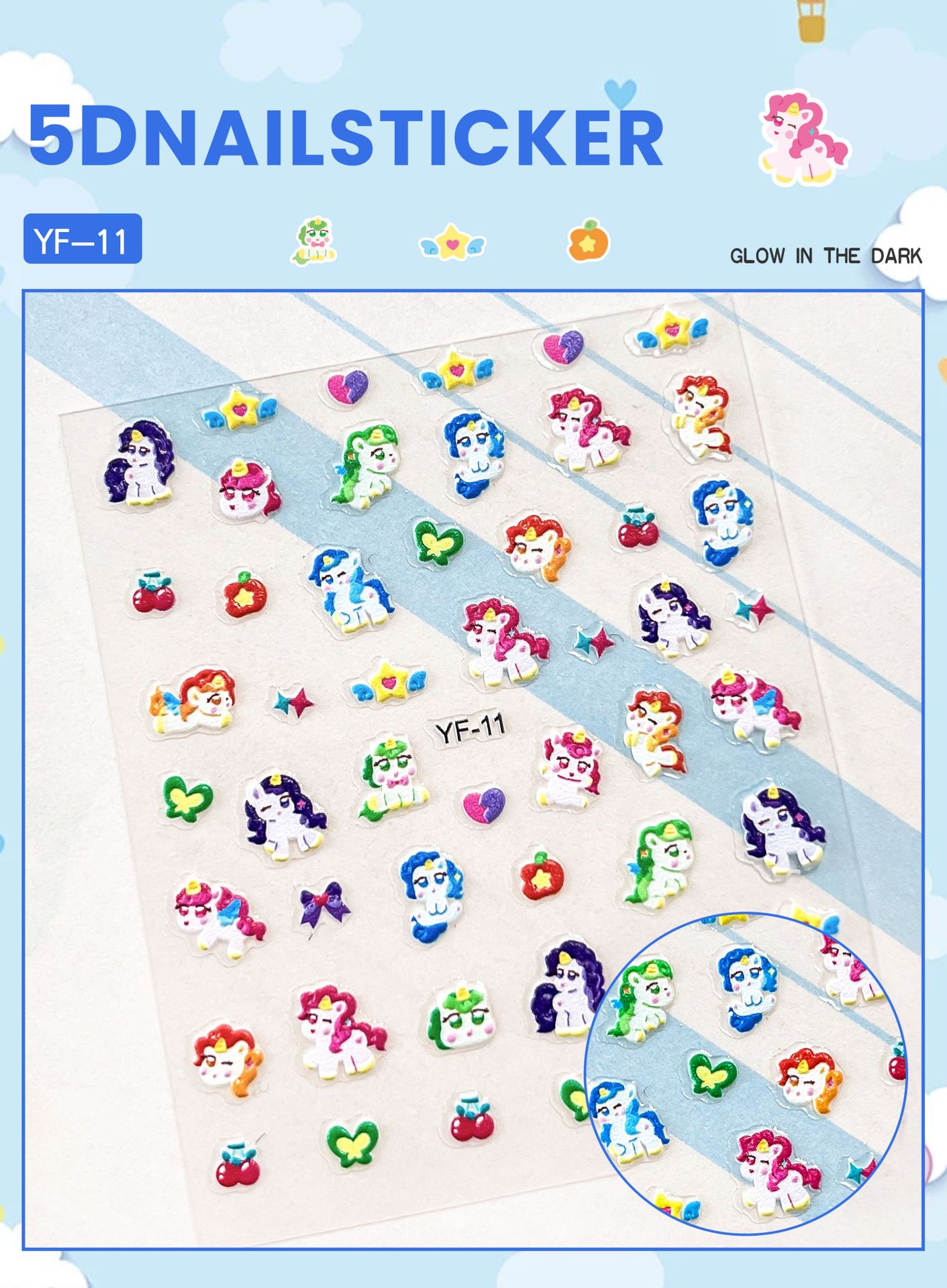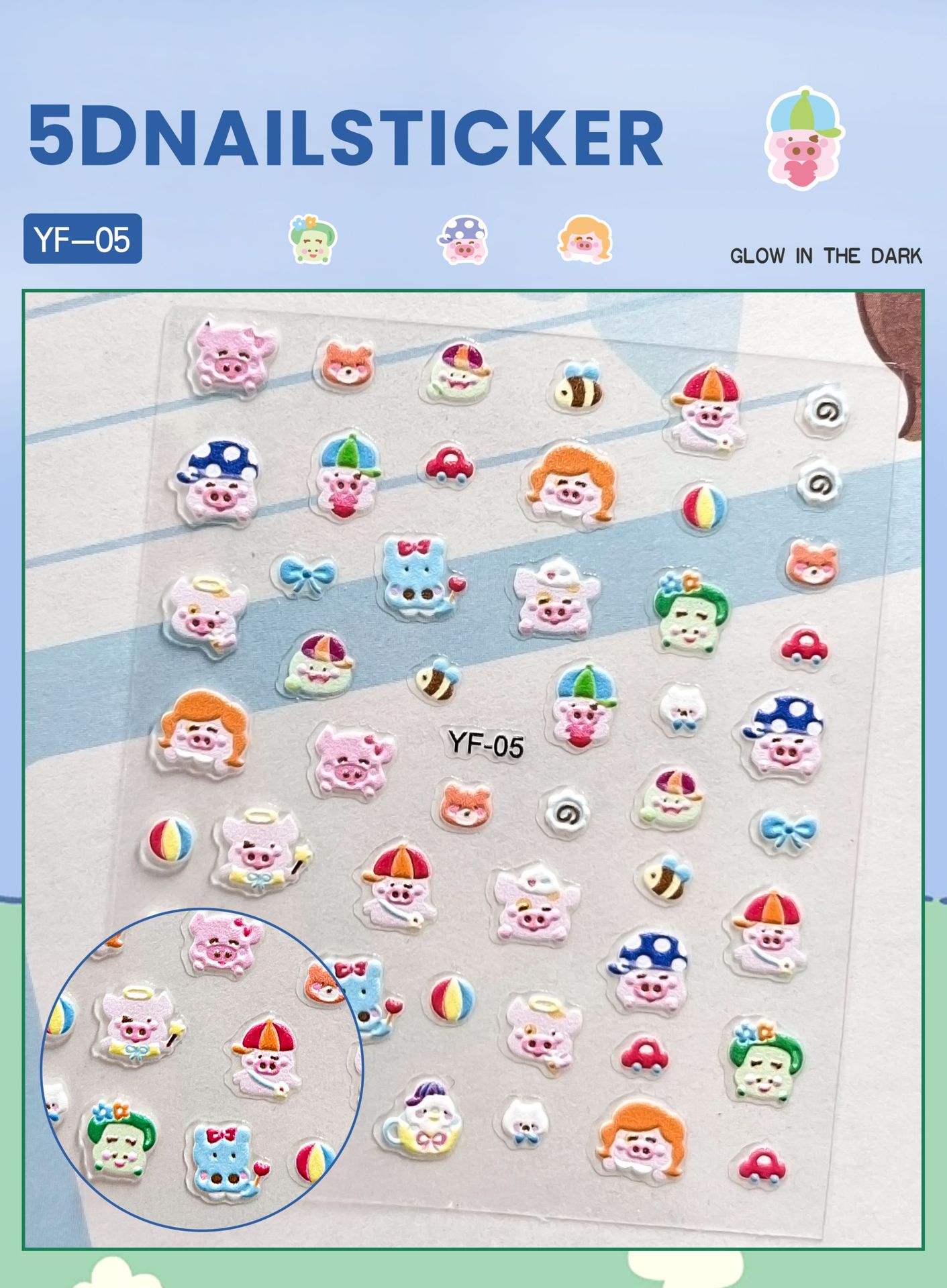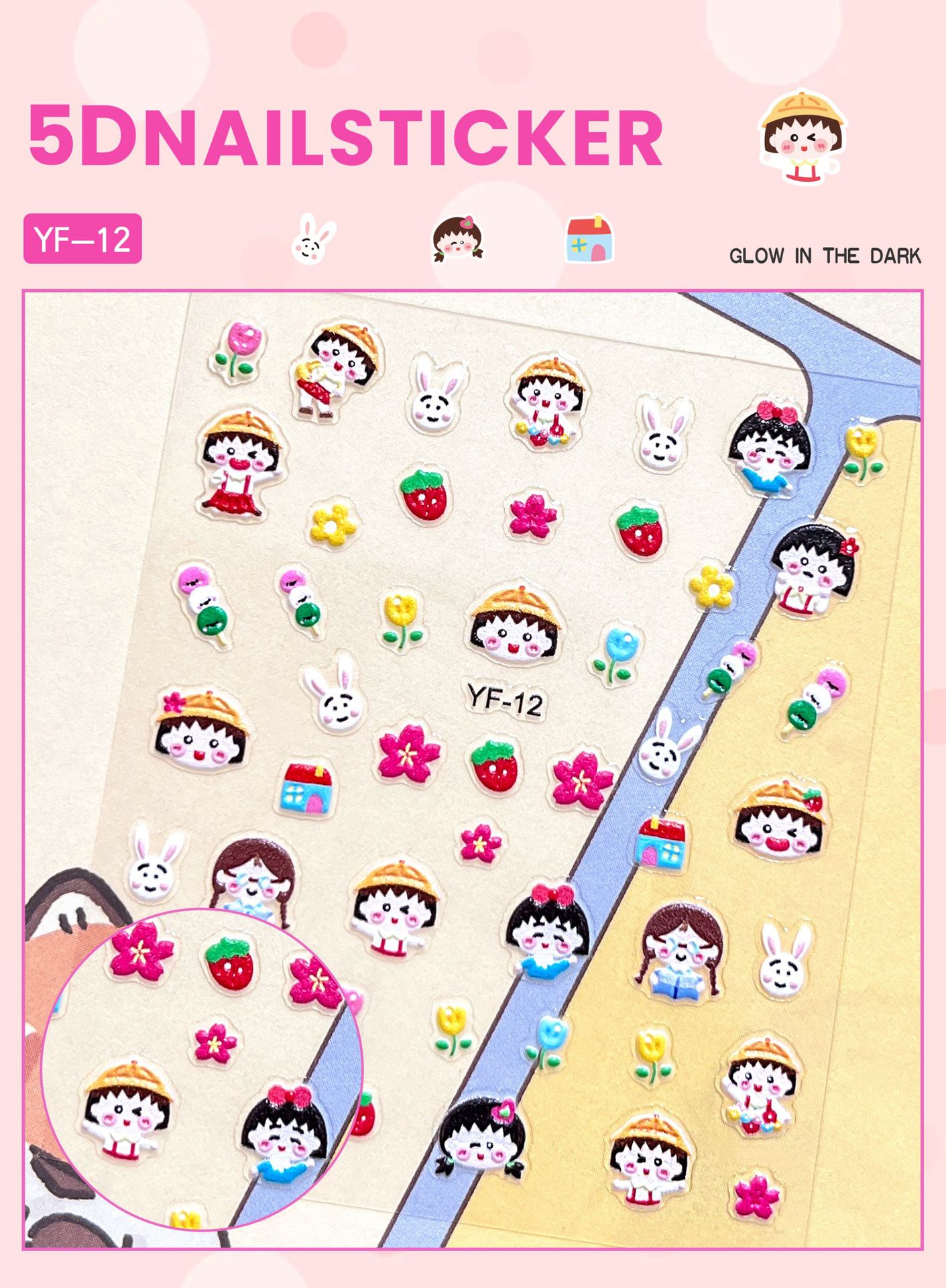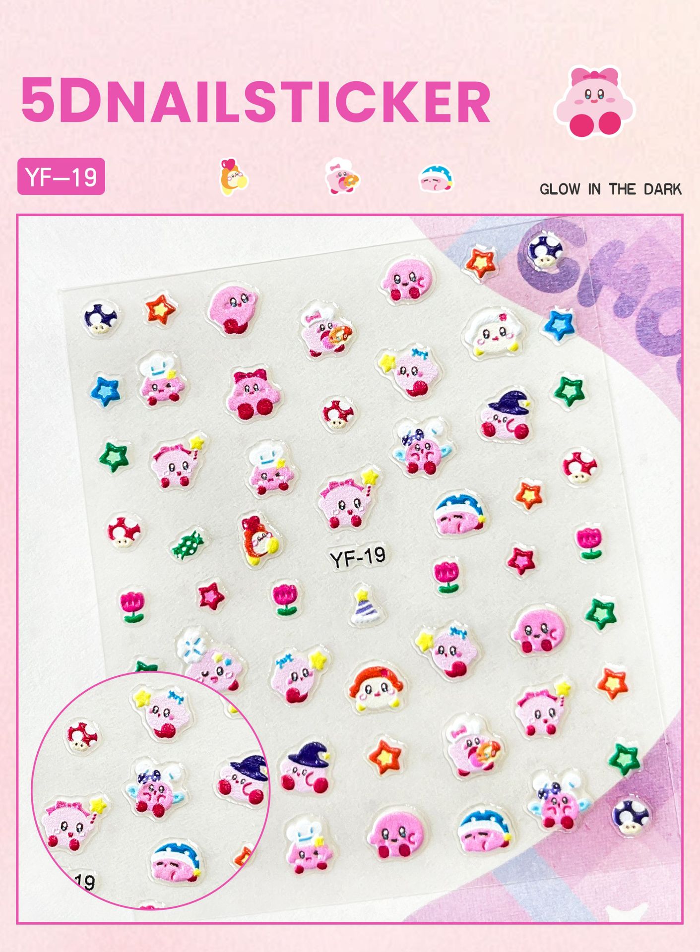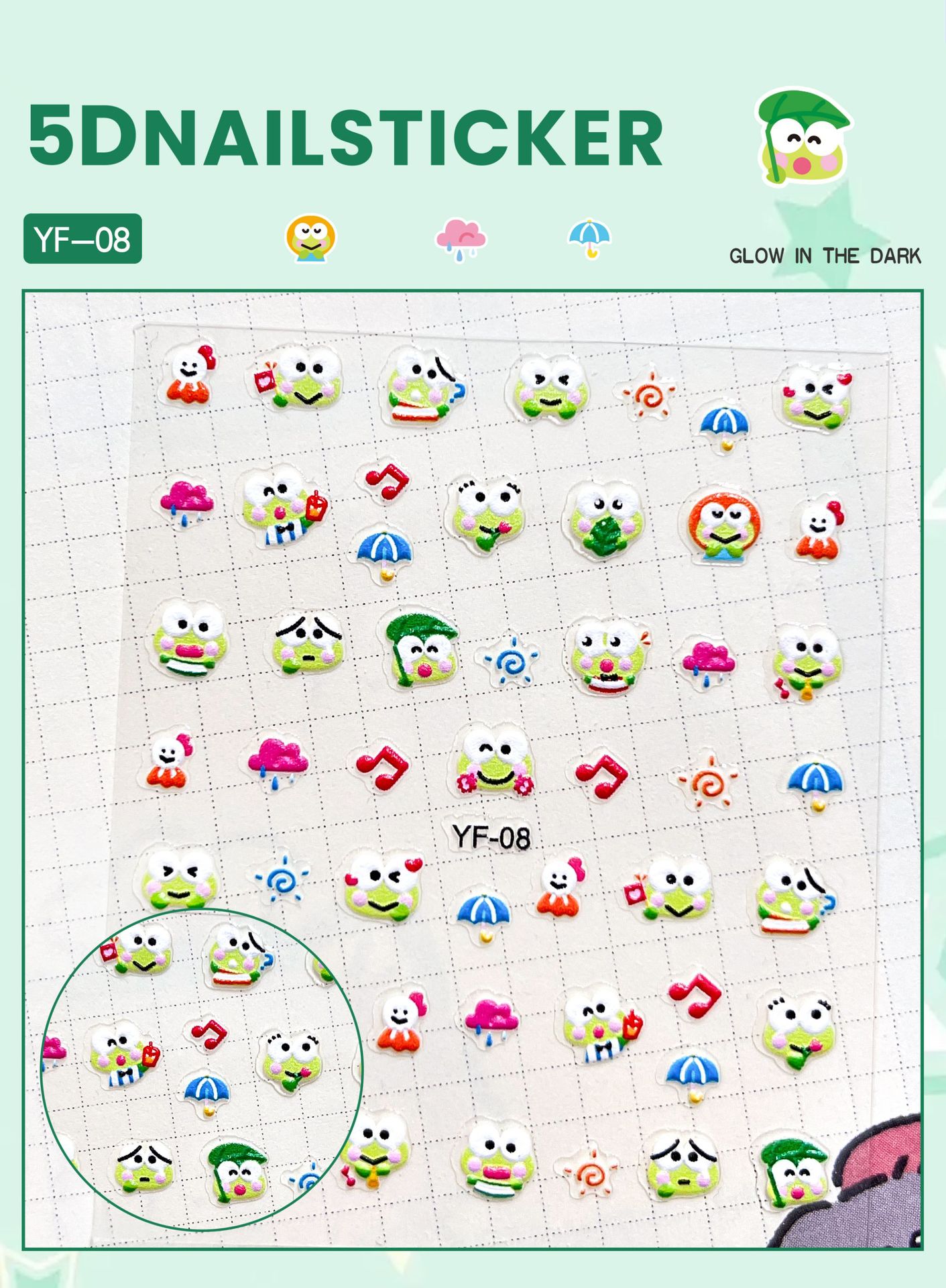 Sanrio Culomi 5D 빛나는 미니 네일 스티커 어린이 소녀 Merlot Patchia 개 아기 네일 스티커