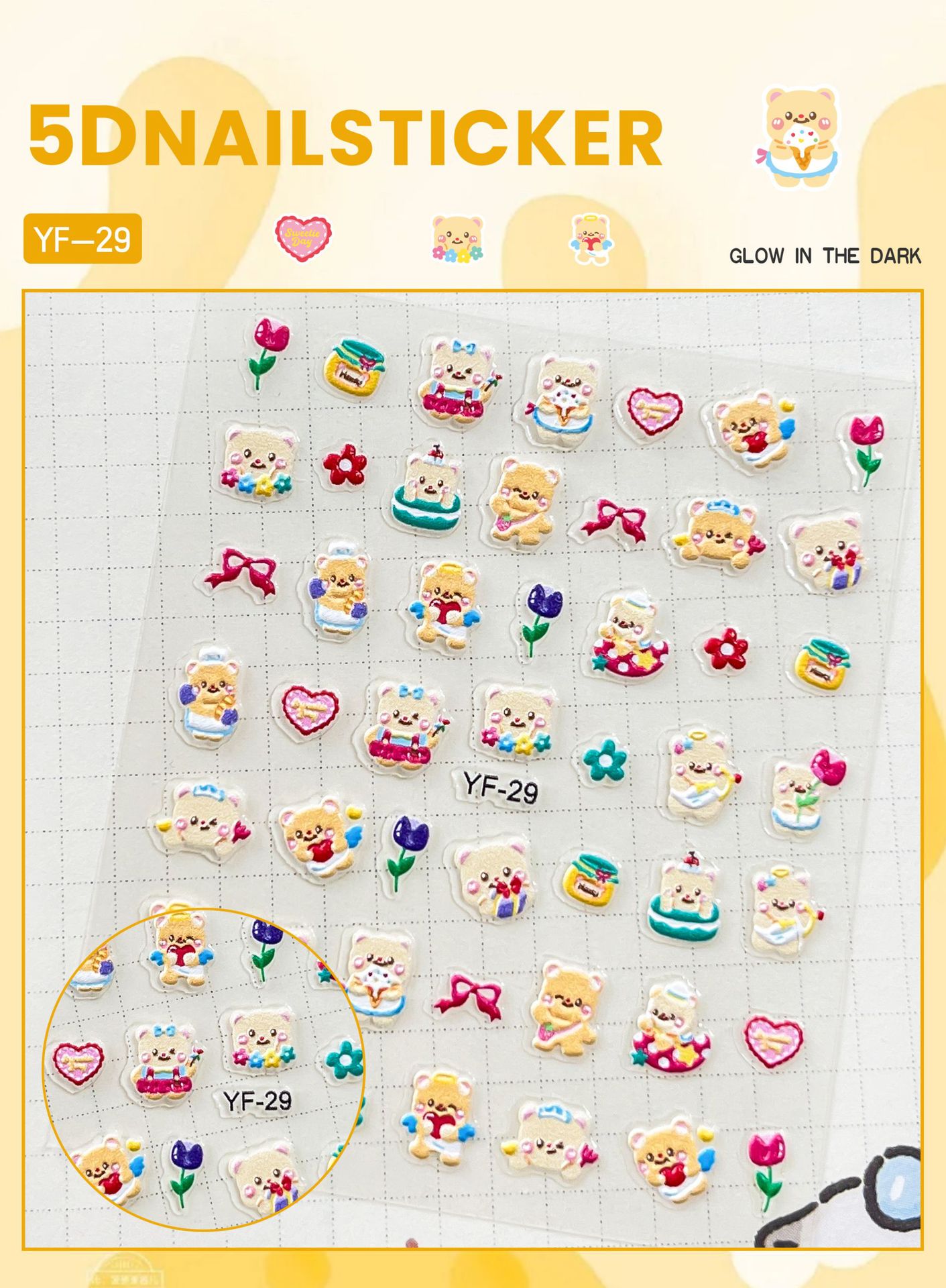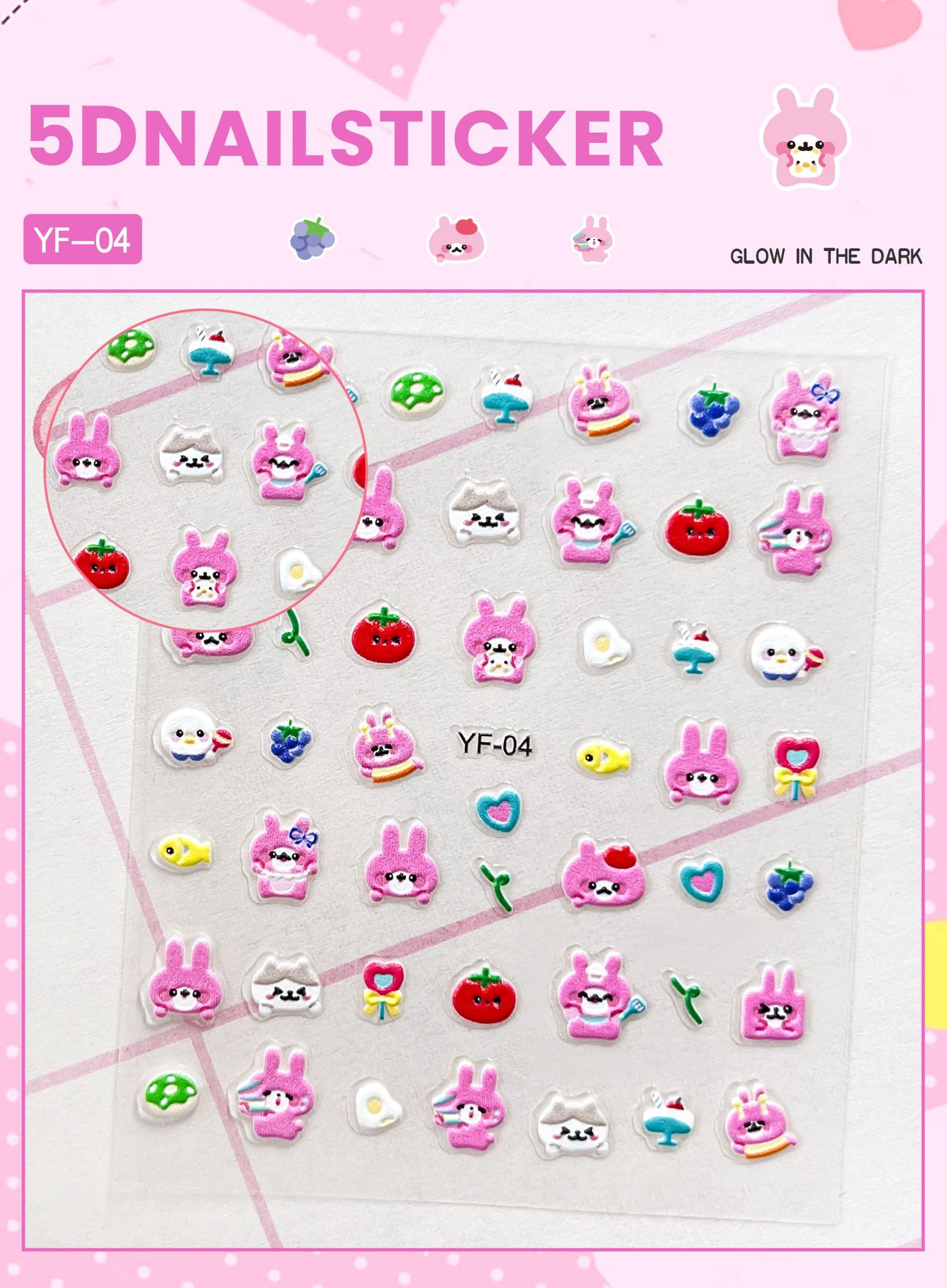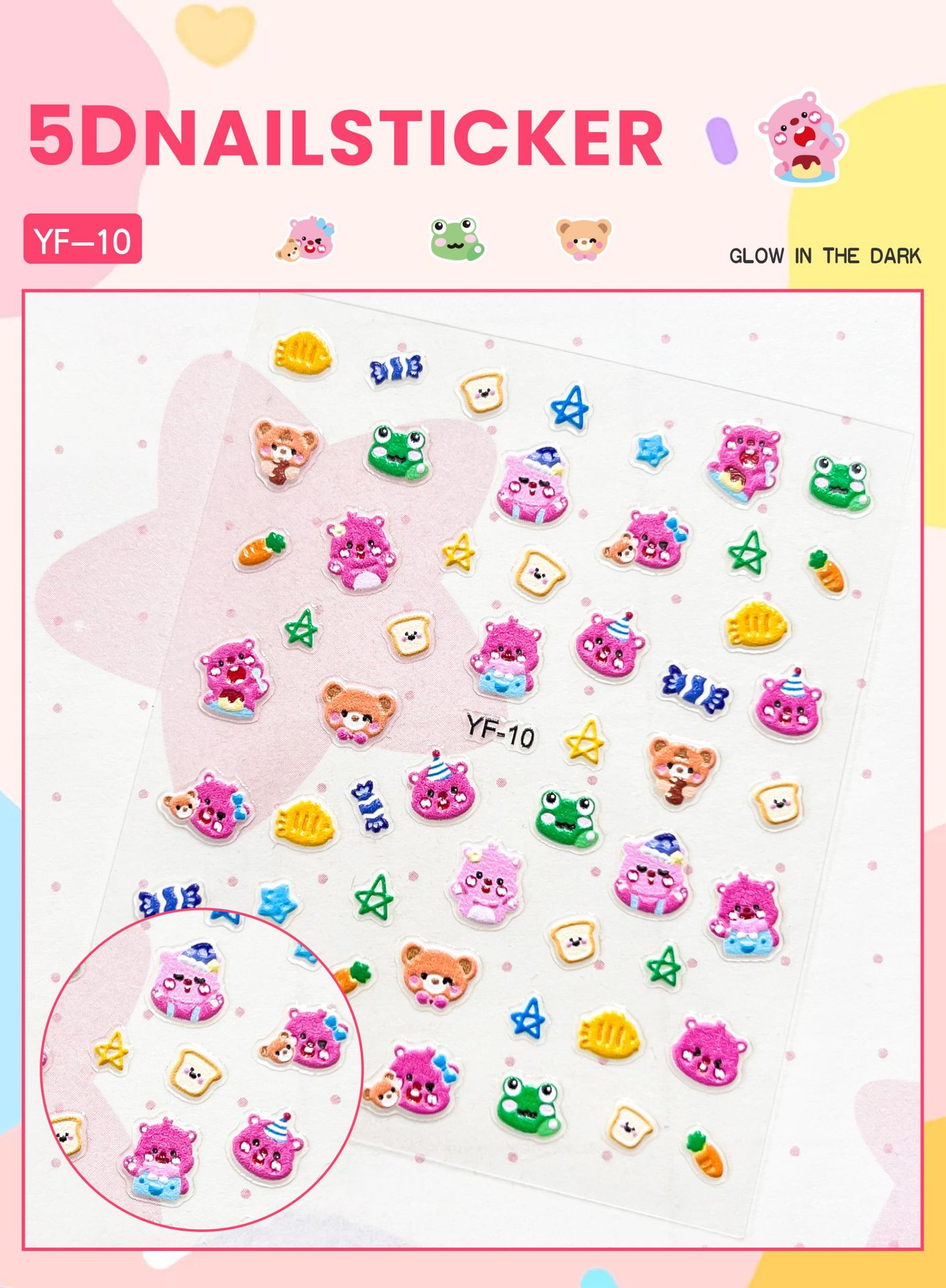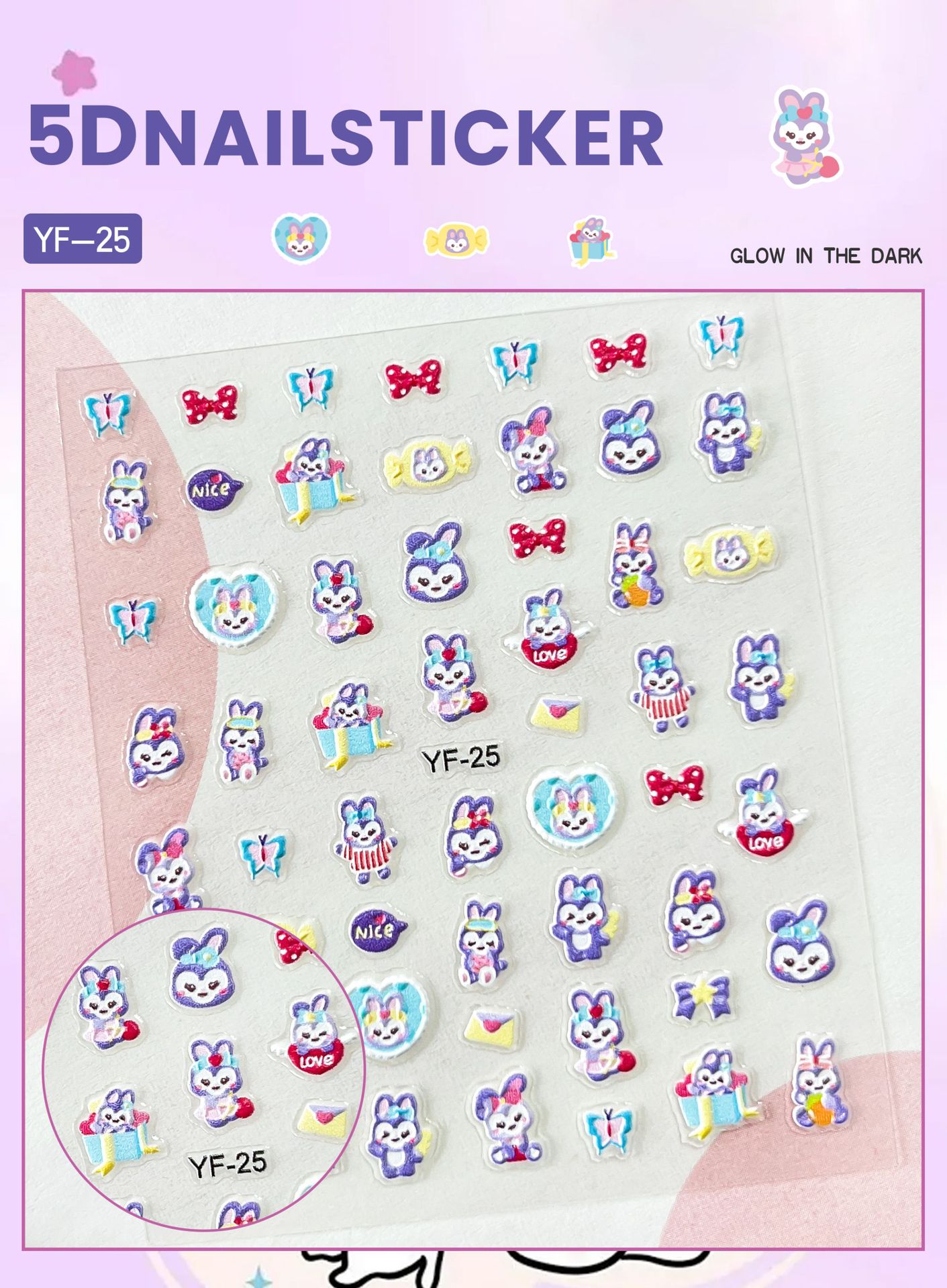 Sanrio Culomi 5D 빛나는 미니 네일 스티커 어린이 소녀 Merlot Patchia 개 아기 네일 스티커