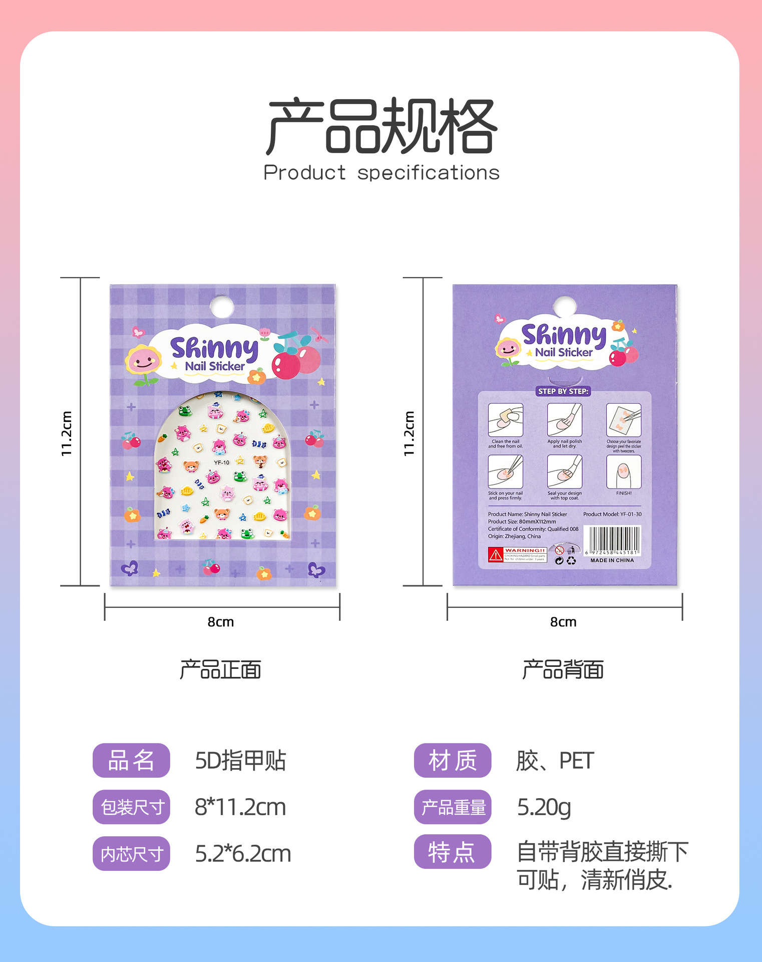注意:此款产品尺寸为6.2*5.2cm,属于迷你贴,请确认好大小再下单!