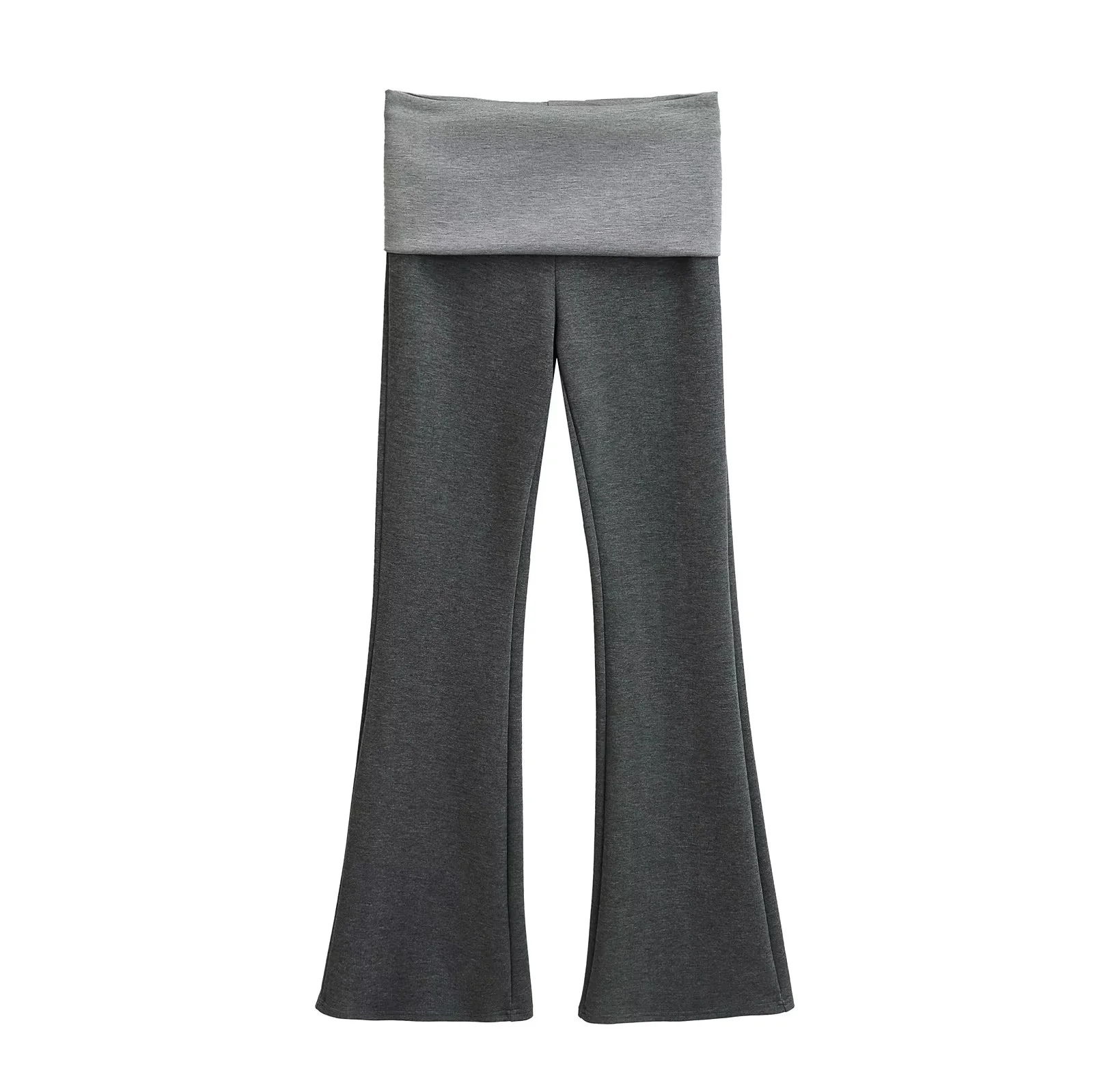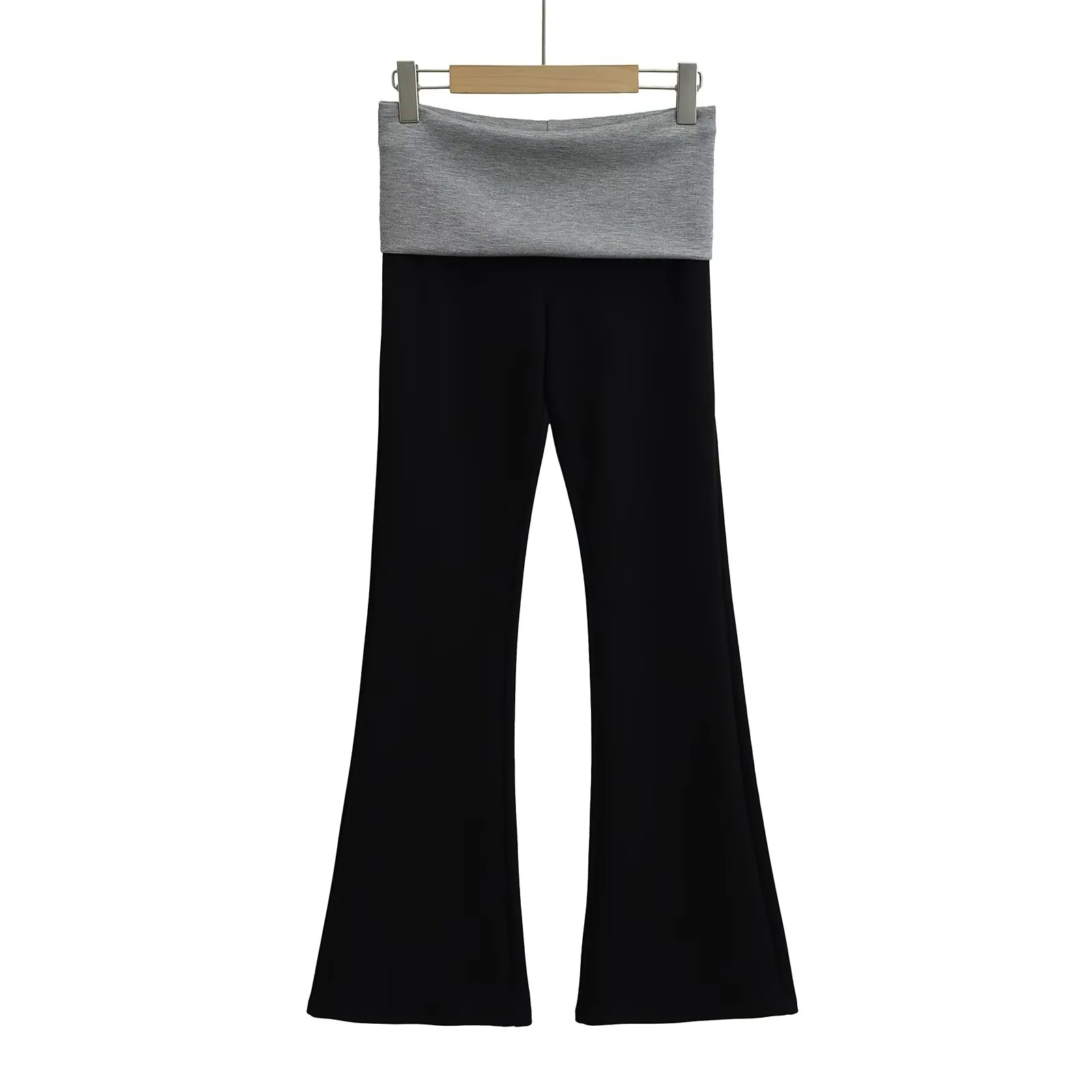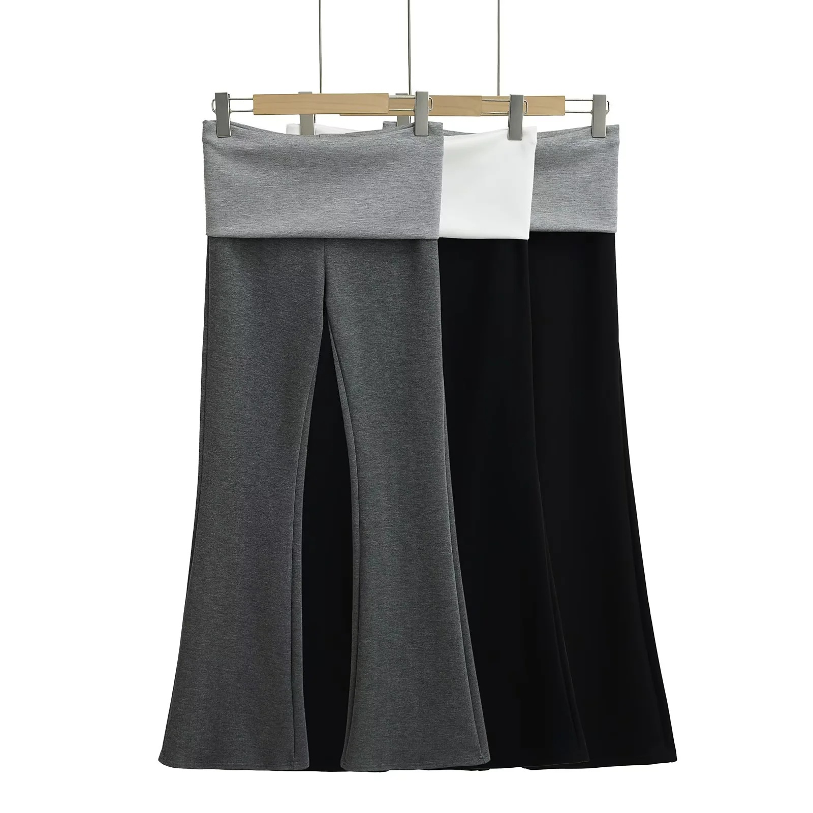 뜨거운 소녀 콘트라스트 컬러 턴업 허리 마이크로 블레 캐주얼 바지 여성의 2025 년 새 봄과 가을 슬림핏 섹시한 트럼펫 바지 긴 바지