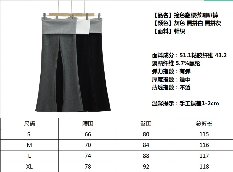 뜨거운 소녀 콘트라스트 컬러 턴업 허리 마이크로 블레 캐주얼 바지 여성의 2025 년 새 봄과 가을 슬림핏 섹시한 트럼펫 바지 긴 바지스토어 가기