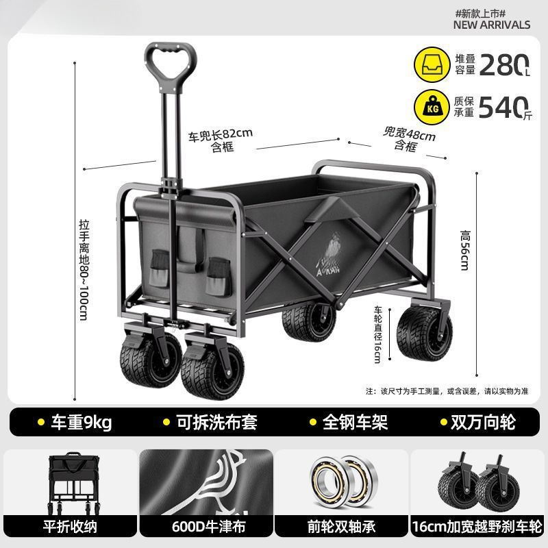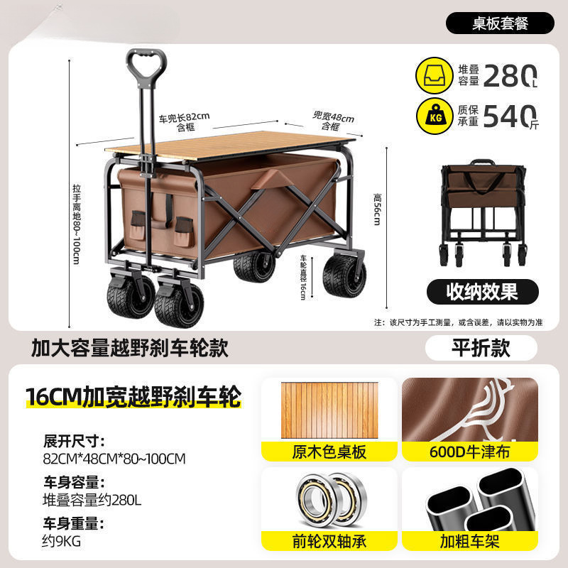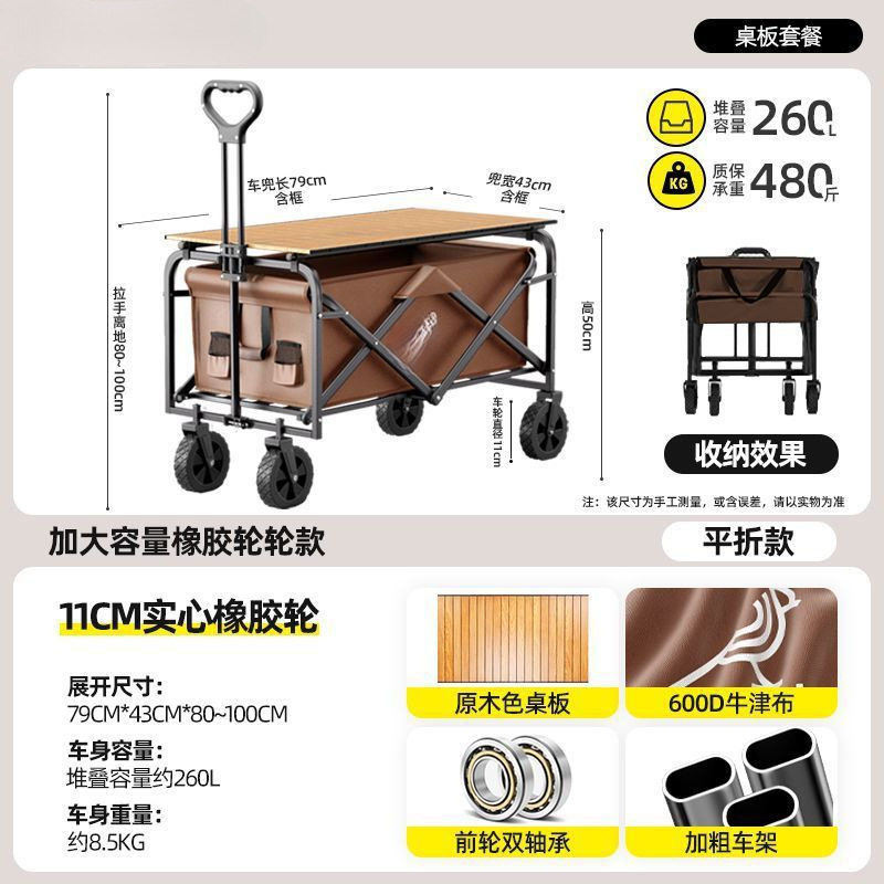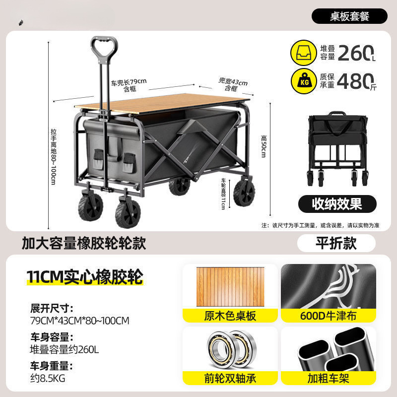캠핑 카트 접이식 야외 핸드 푸시 피크닉 자동차 풀로드 캠프 자동차 트레일러 대형 테이블 캠핑 카