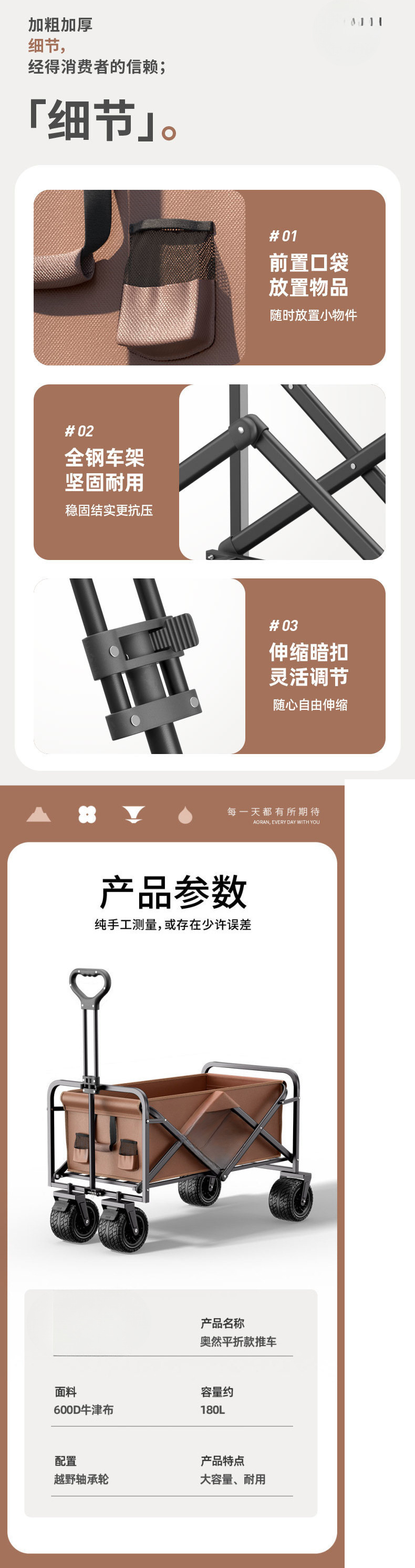 • AR-브라운 [올스틸 프레임/600D 옥스포드 원단]-업그레이드-유니버설 내마모성 휠
