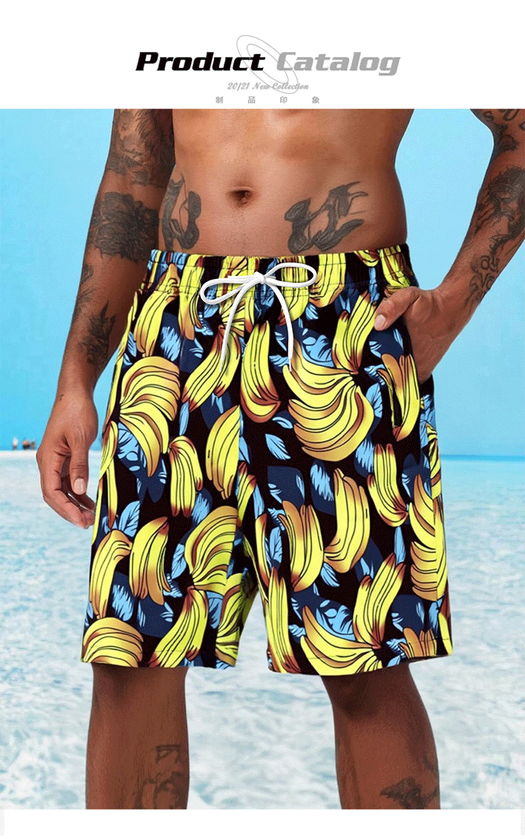 스트리트 캐주얼 반바지 식물 과일 프린트 유럽 및 미국 트렌드 브랜드 피트니스 러닝 스포츠 농구 반바지 남성 트렌드