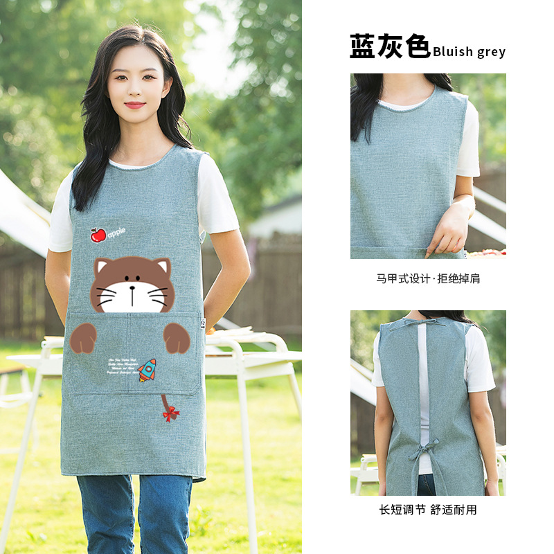 • 빅포켓 앞치마 조끼 블루그레이 [고양이]
