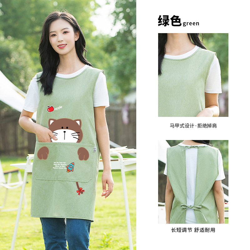• 큰주머니 앞치마 조끼 된장 그린[고양이]