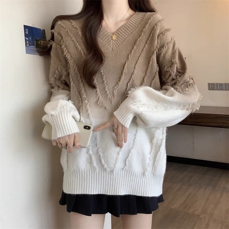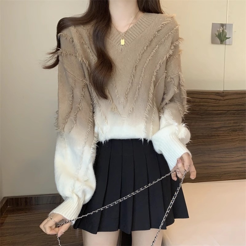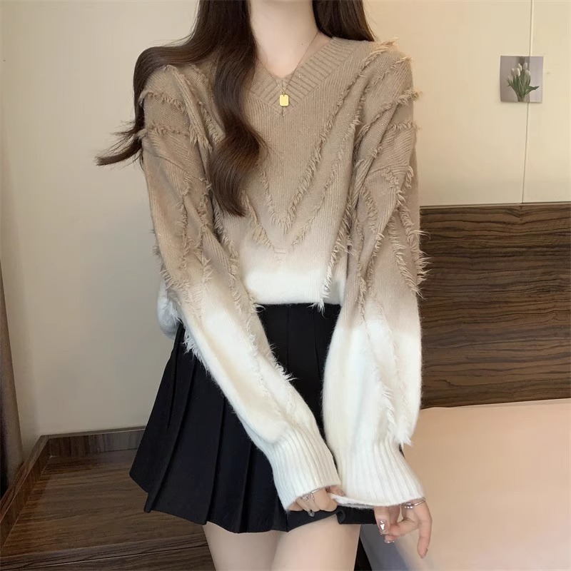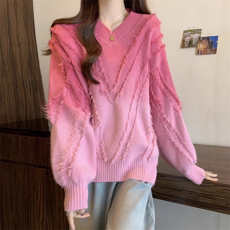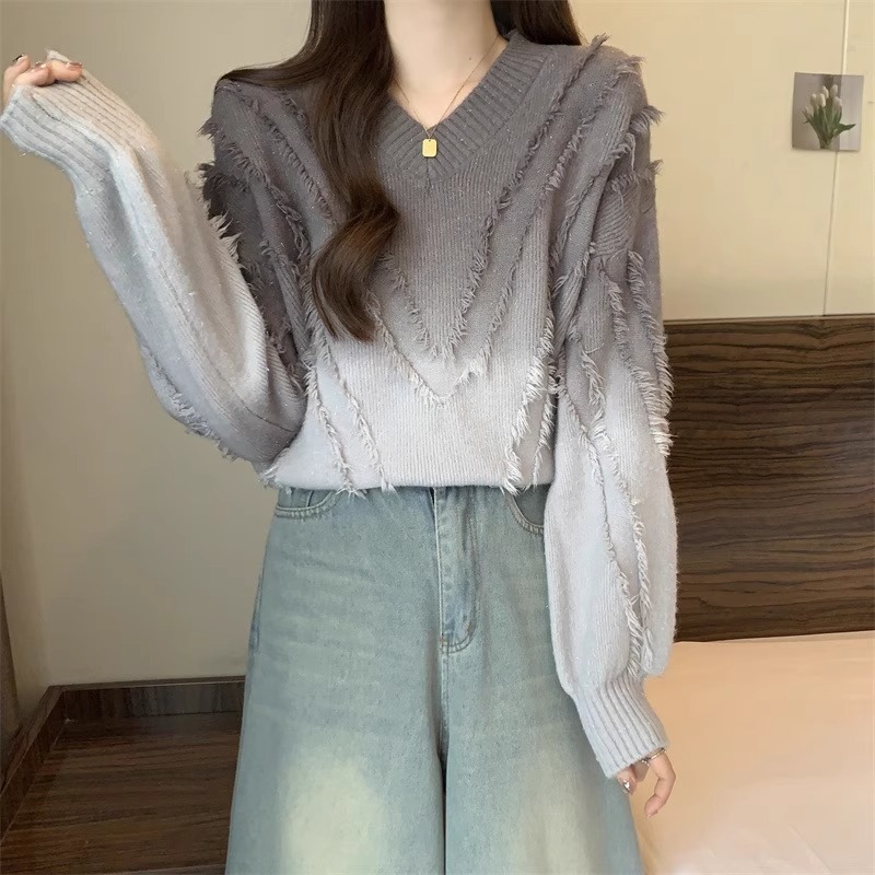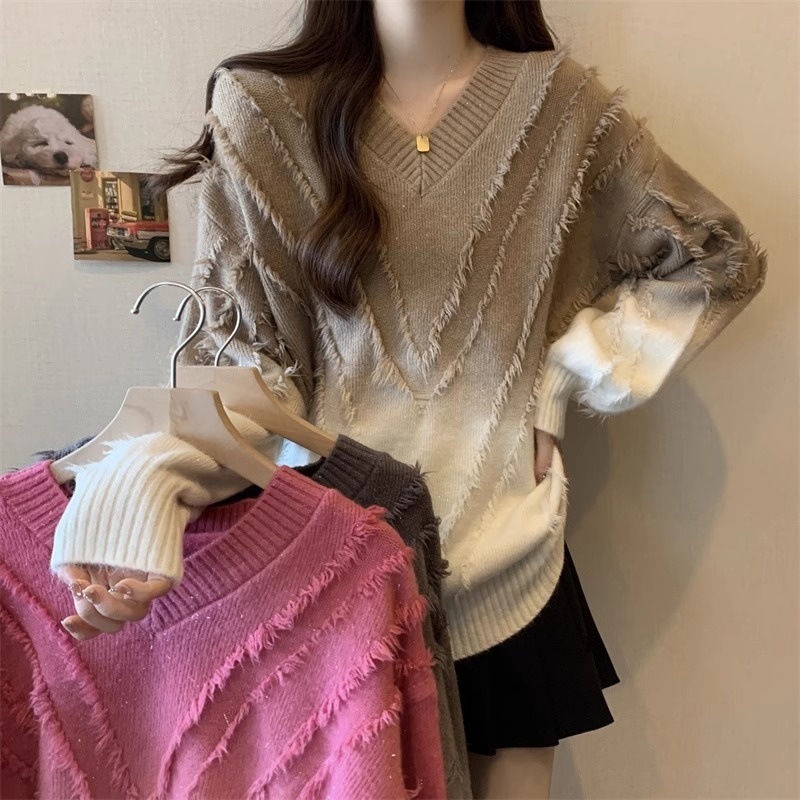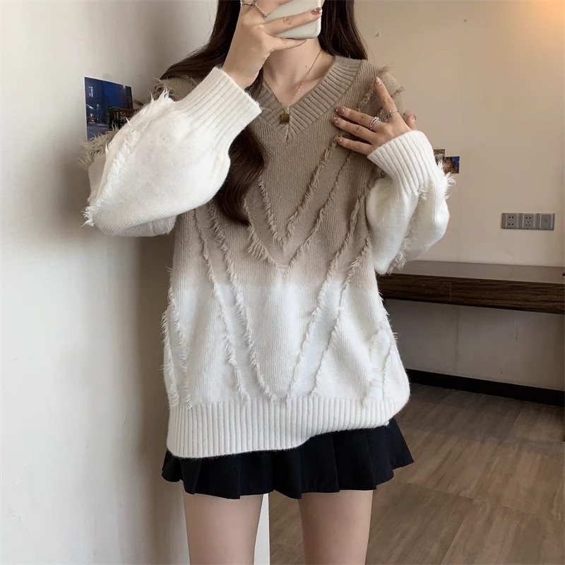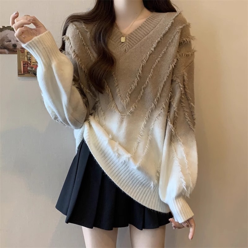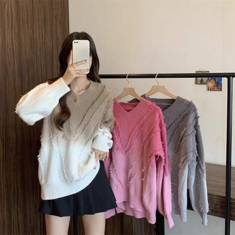 그라디언트 게으른 V 넥 술 스웨터 여성의 가을과 겨울 플러스 사이즈 올해 통통녀 인기스토어 가기