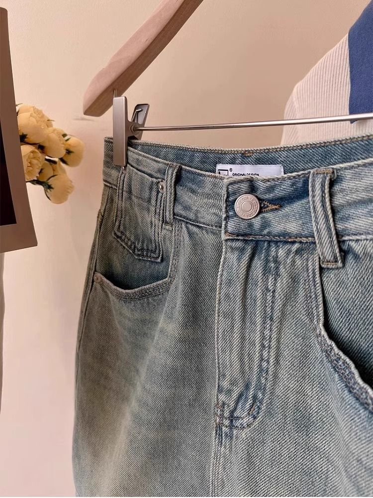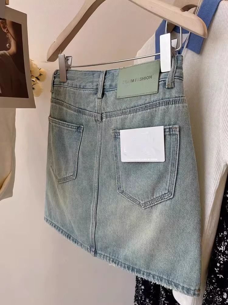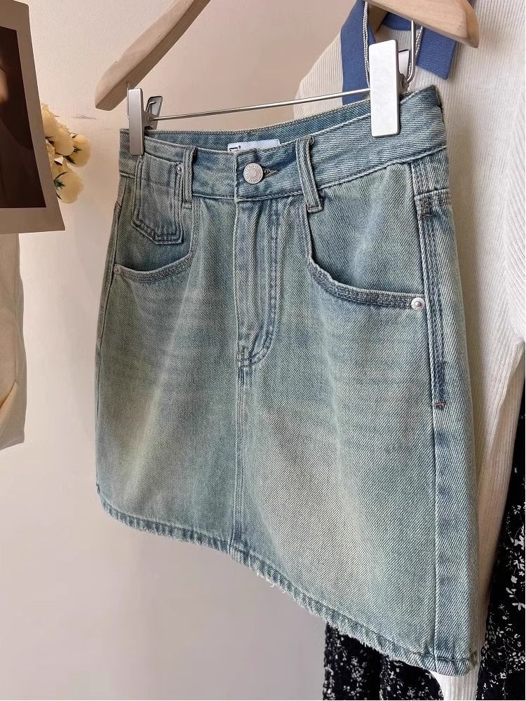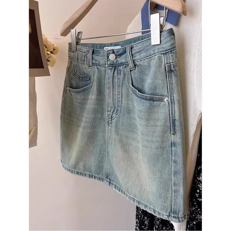 플러스 사이즈 데님 치마 여자 2025 여름 새로운 얇은 통통녀 높은 허리 느슨한 슬림 A 라인 엉덩이 치마스토어 가기