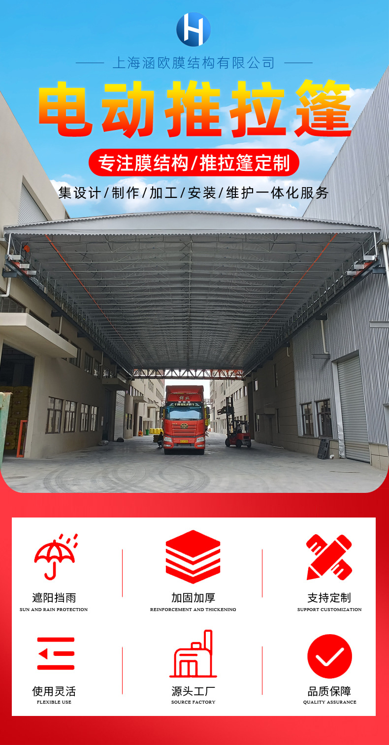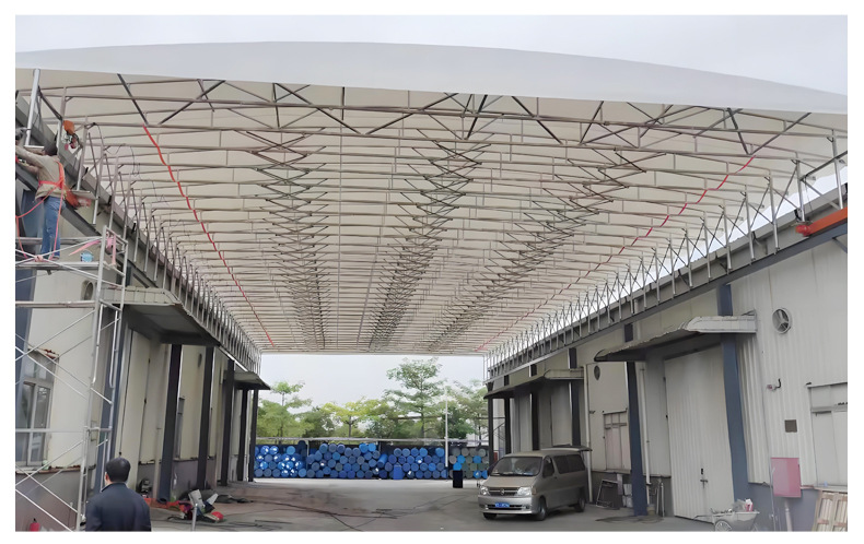 户外篮球场电动推拉棚 移动遮阳伸缩雨篷 无锡工厂仓库活动推拉蓬