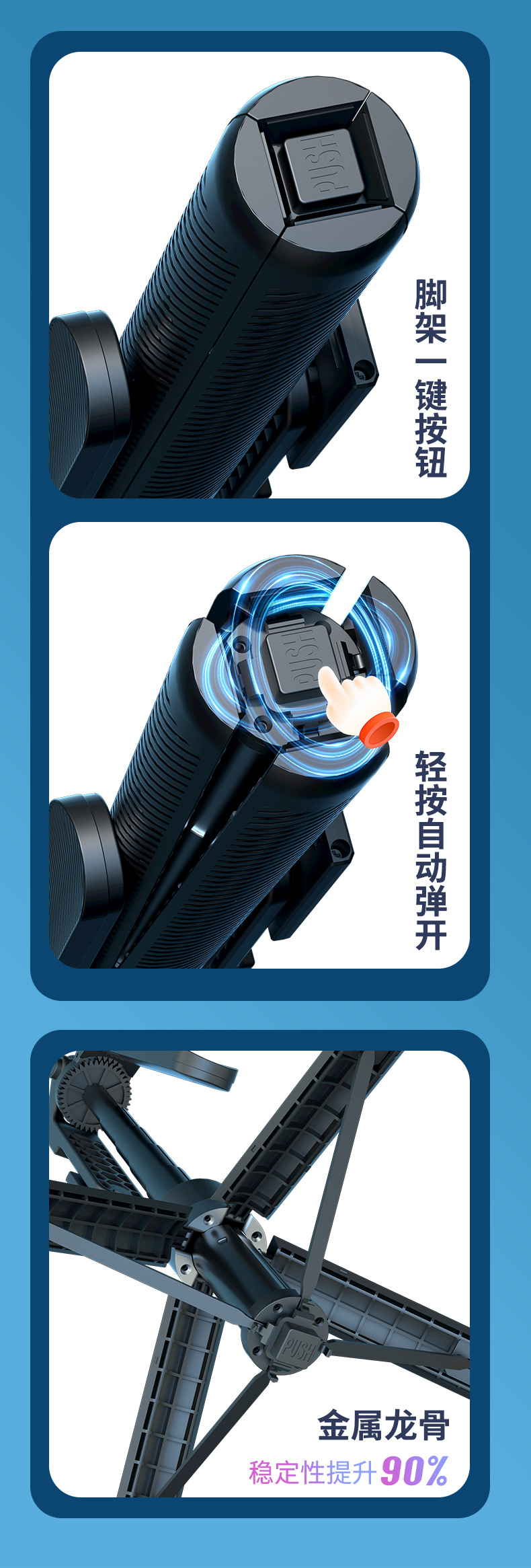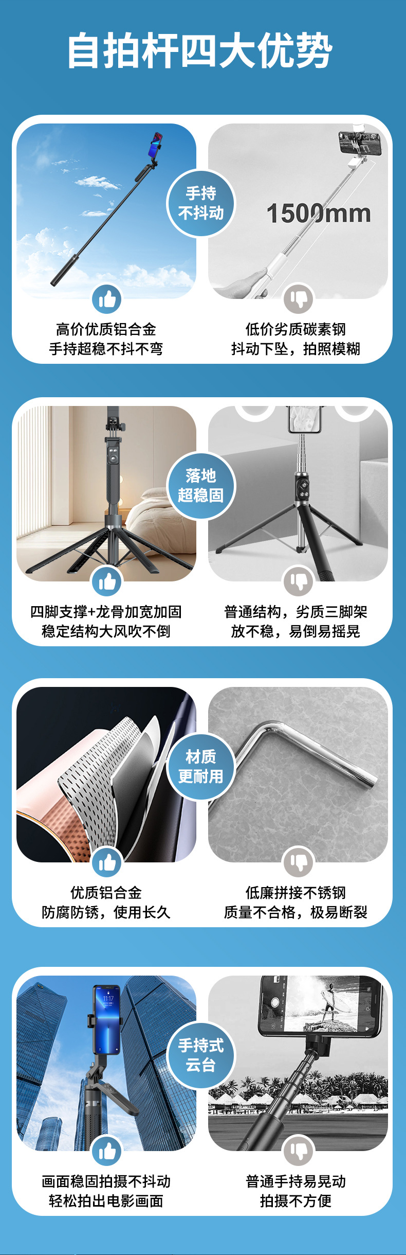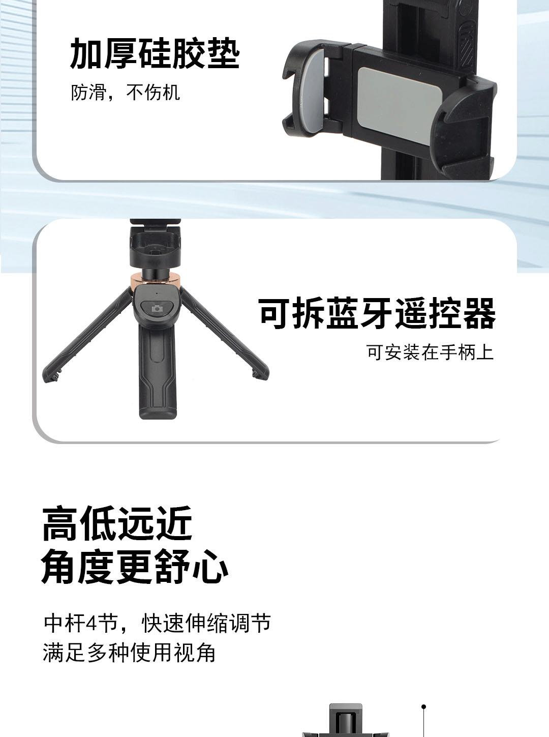 • [업그레이드된 듀플렉스 킬 강화 4각대 + 충전 블루투스 리모컨] 알루미늄 합금 40CM 풀업 + 블랙 셀카봉