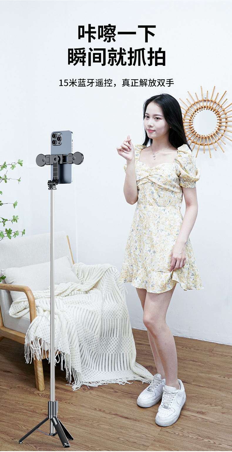 • A14 블랙 [알루미늄 합금 셀카봉 1.8m개 + 충전 기능 Douyin 블루투스 리모컨 + 싱글 헤드라이트]