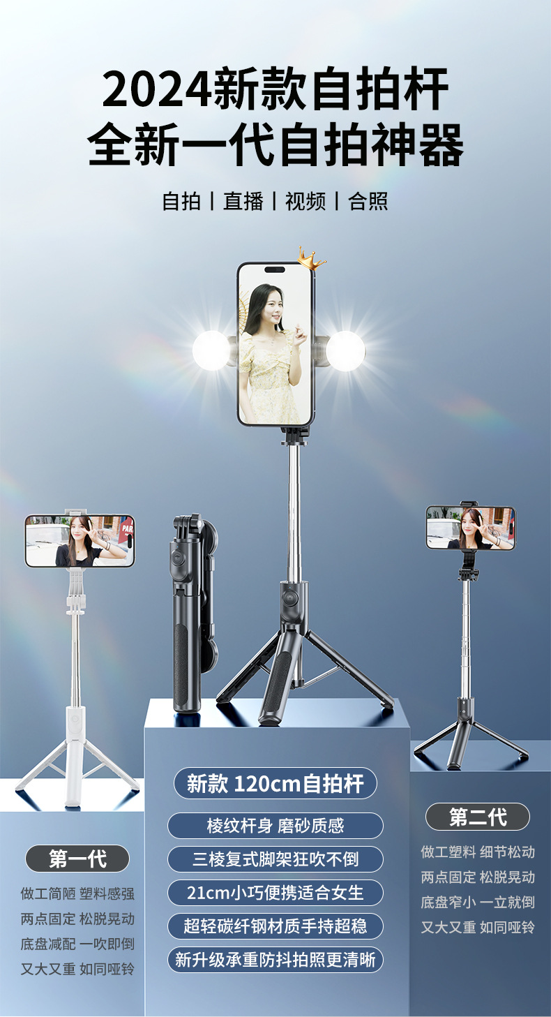• A14 블랙 [알루미늄 합금 셀카봉 1.8m개 + 충전 기능 Douyin 블루투스 리모컨 + 듀얼 헤드라이트]