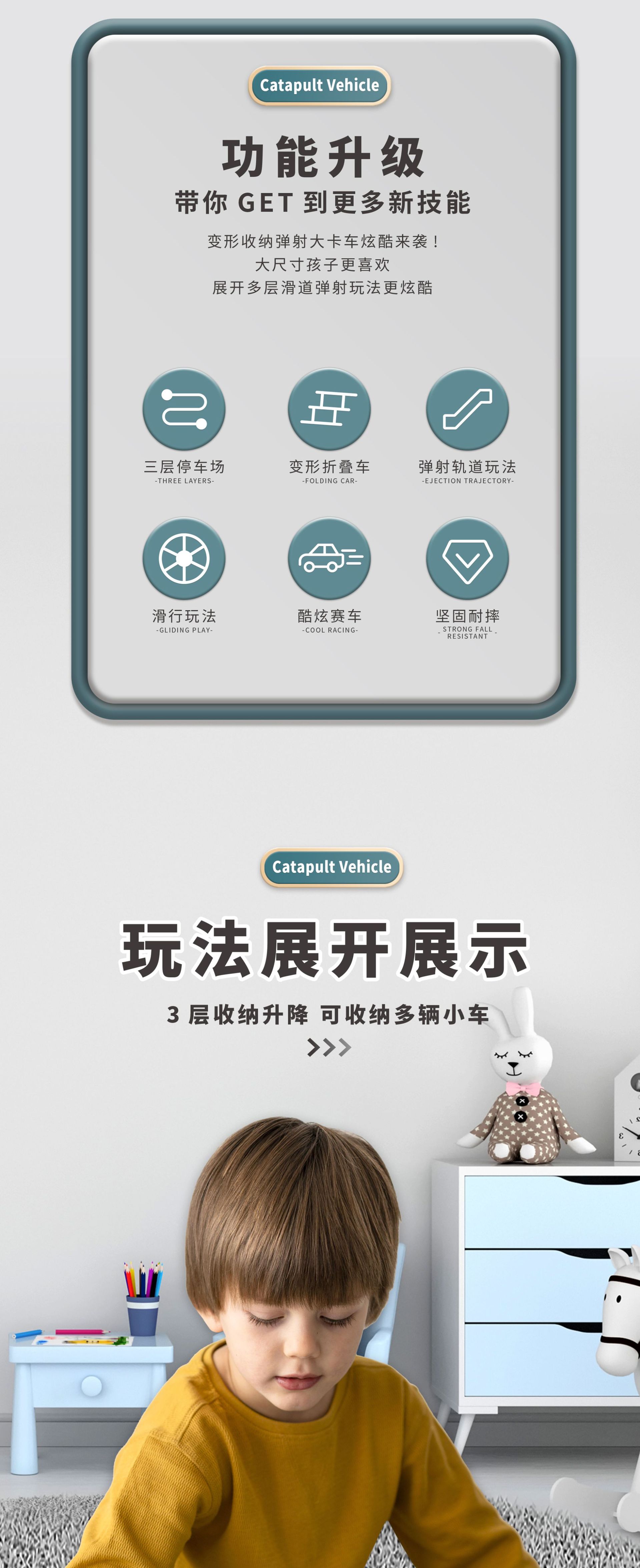 3단 접이식 캐스터 슬라이딩 컨테이너 트럭 리프팅 캐스터 트랙 자동차 자동차 보관 세트 어린이 장난감 자동차