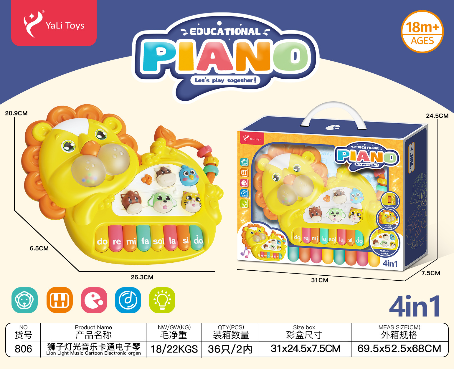 • 사자 조명 음악 만화 전자 키보드