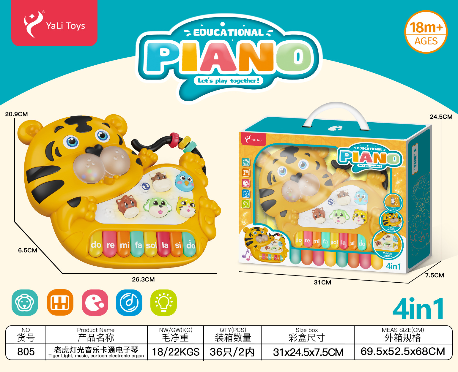 • 호랑이 조명 음악 만화 전자 키보드