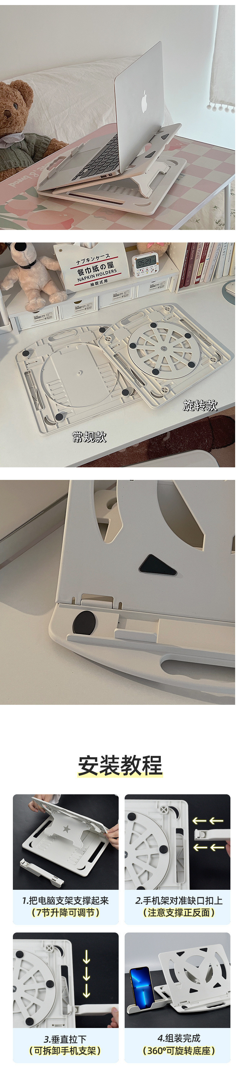 • ABS 플라스틱 회전 모델 [미끄럼 방지 및 매우 안정적] + 휴대폰 홀더