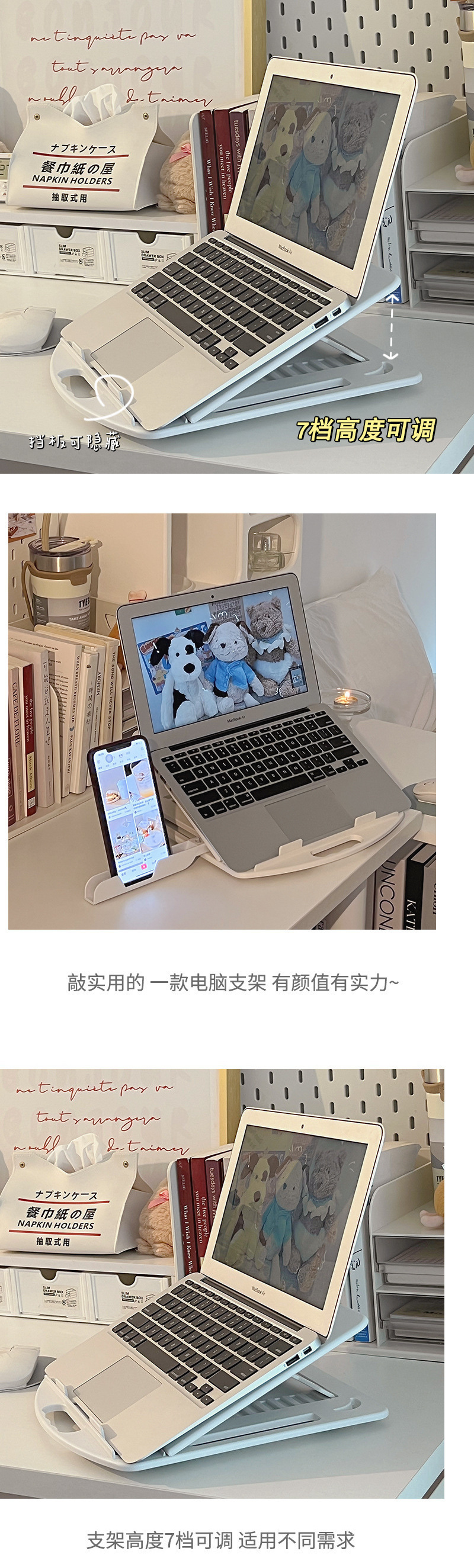 노트북 스탠드 데스크탑 ° 회전 지원 높은 냉각 랙 접히는 휴대용 조정 가능한 지원