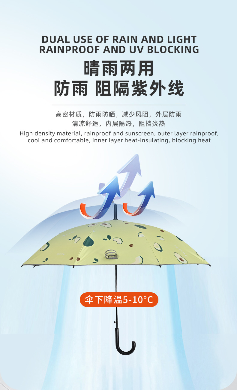 어린이 카토 우산 귀여운 과일 색 우산 스트레이트 우산 선 스크린 햇살 햇살과 비 이중 사용 우산 학생 카토 우산