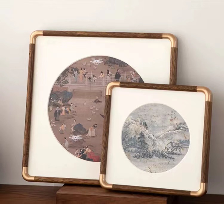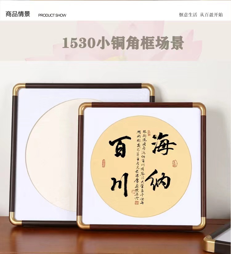 솔리드 우드 액자 a4 멀리 새로운 중국 스타일 세트 테이블 모조 구리 코너 헤지 중국 다방 전통 중국 회화 캐릭터 탑재 그림 프레임 장식품스토어 가기