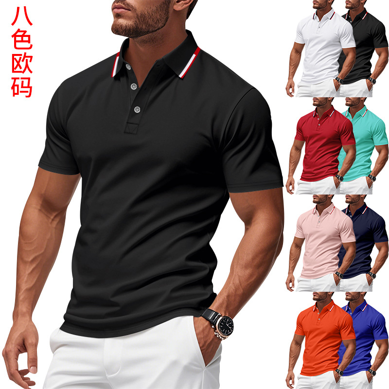 아마존 국경 단색 반팔 티셔츠 남자 여름 핫 세일 남자 캐주얼 비즈니스 골프 퀵 드라이 폴로 셔츠
