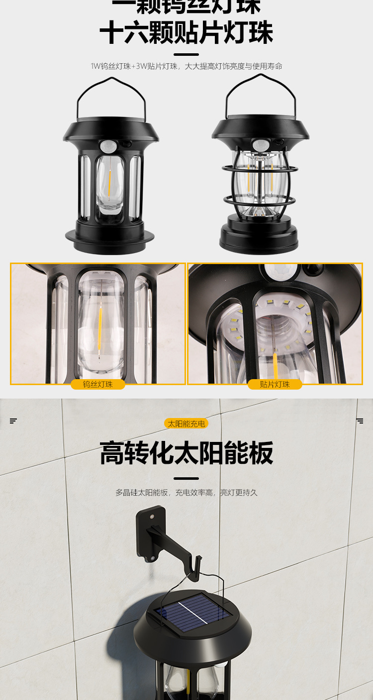 태양 캠핑 빛 충전식 인체 유도 텐트 빛 캠핑 가벼운 분위기 조명 말 램프