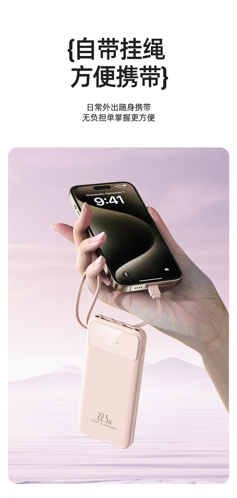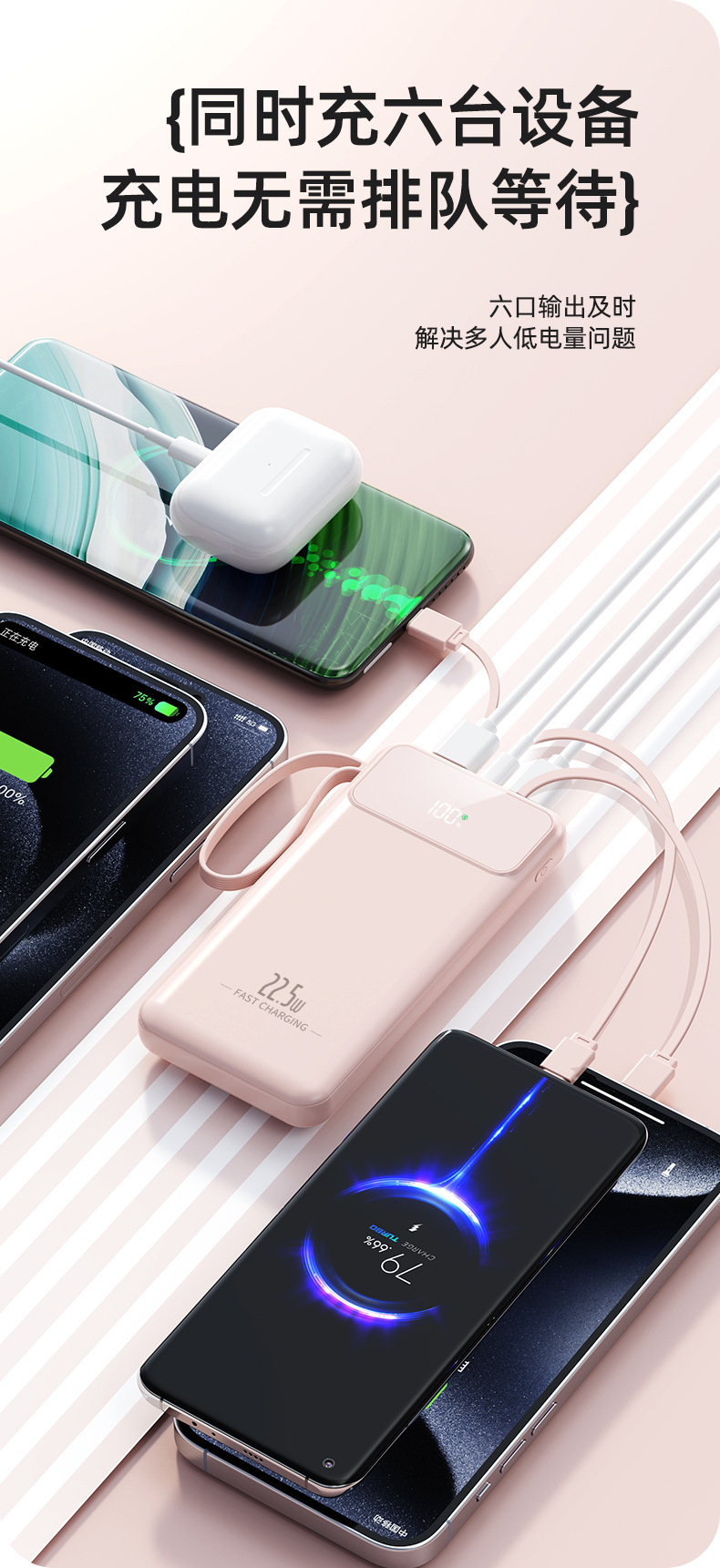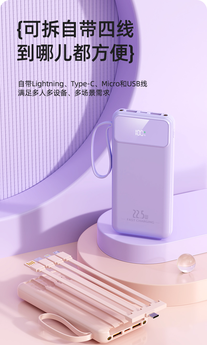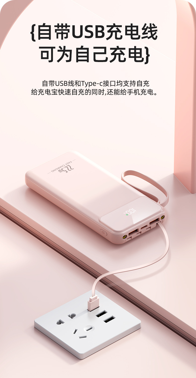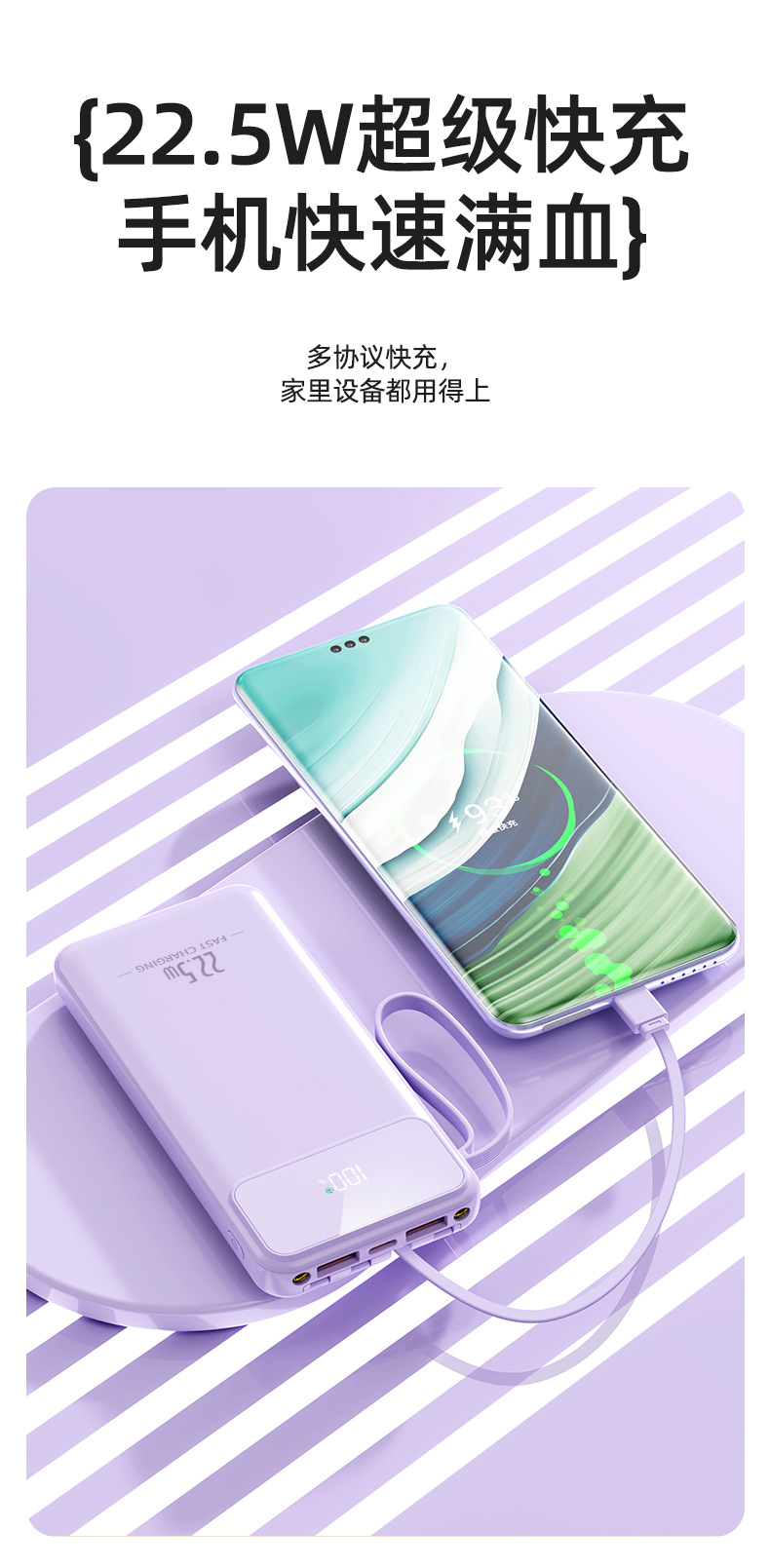3C 인증 미니 케이블 22.5W 초고속 충전 보조베터리 20,000mAh 모바일 전원 공급 장치 맞춤형 kc 크로스보더