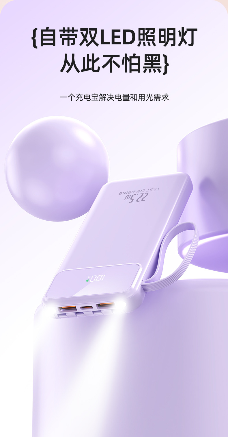 3C 인증 미니 케이블 22.5W 초고속 충전 보조베터리 20,000mAh 모바일 전원 공급 장치 맞춤형 kc 크로스보더스토어 가기