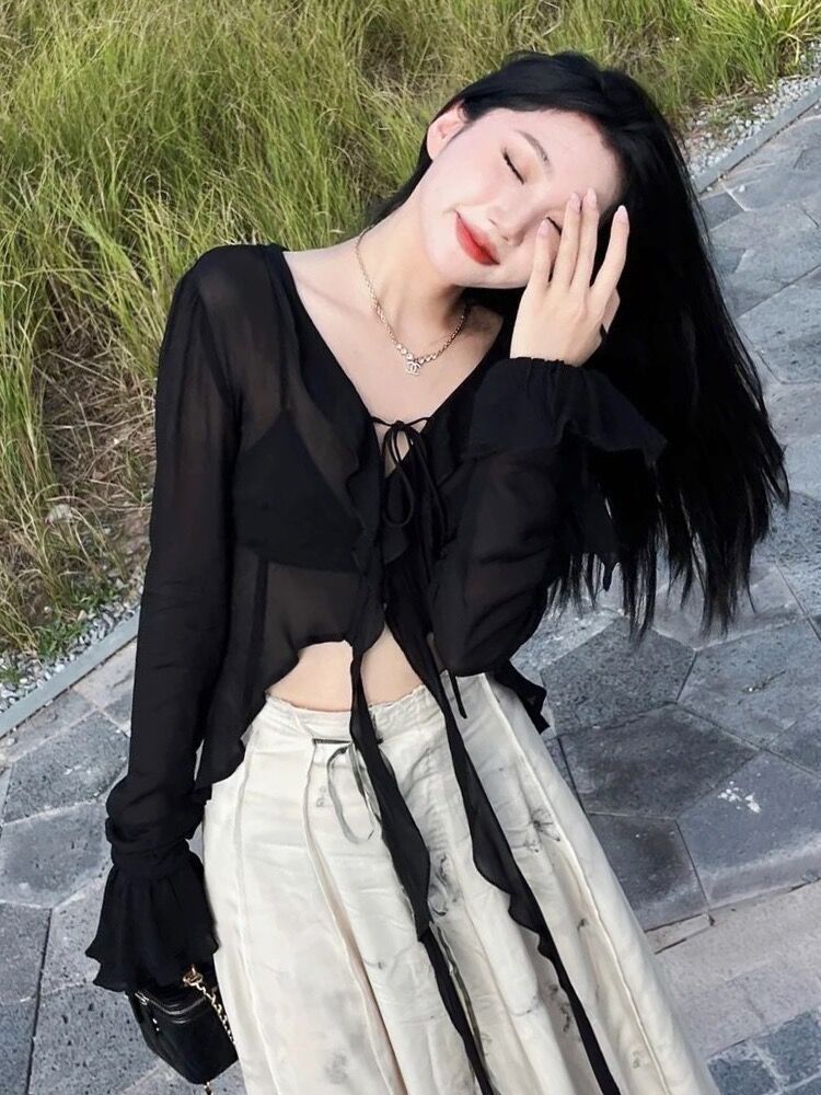 시폰 선 스크린 의류 여성용 외주 슬링 숄과 함께 여름 새로운 스타일 스커트 통기성 외부 카디건 코트 얇은 블라우스