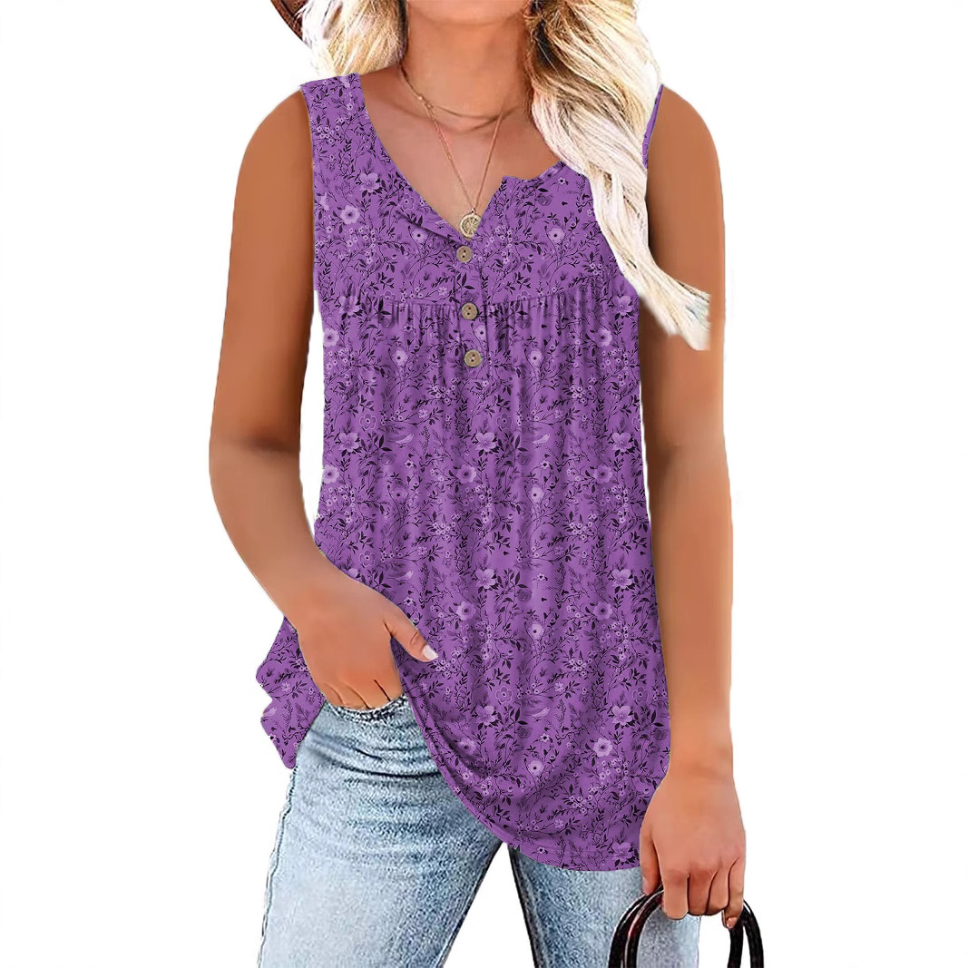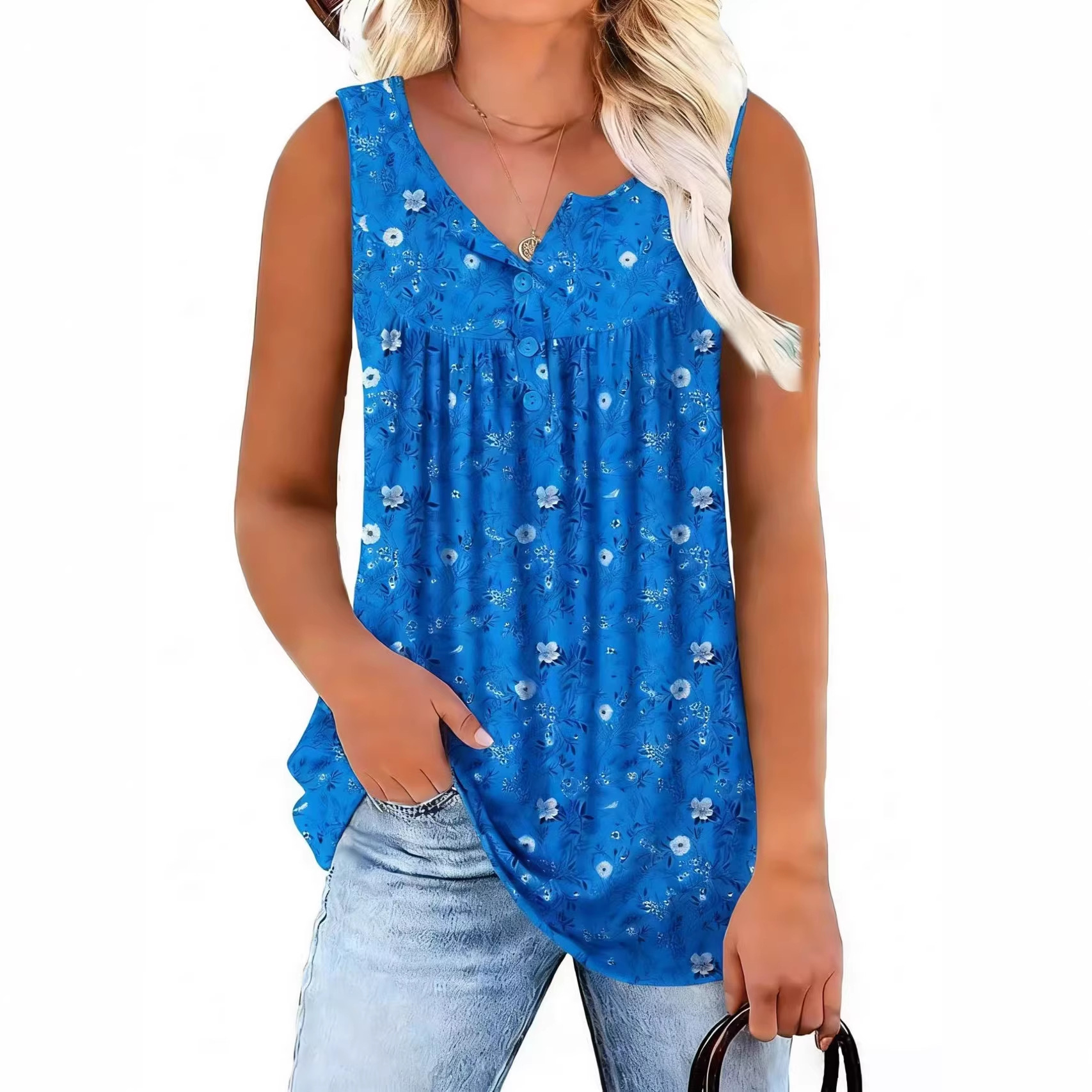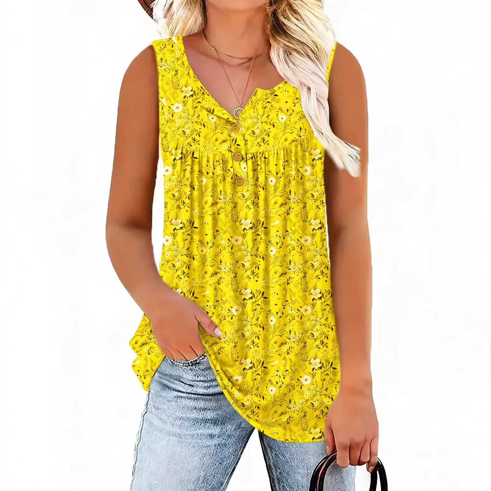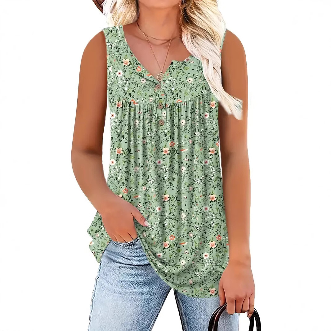 소원 유럽과 미국의 ebay2025 새로운 여름 작은 꽃 인쇄 둥근 목 니트 민소매 조끼 탑 여성
