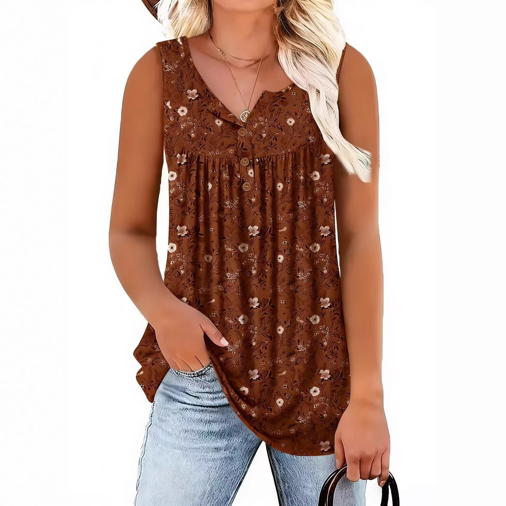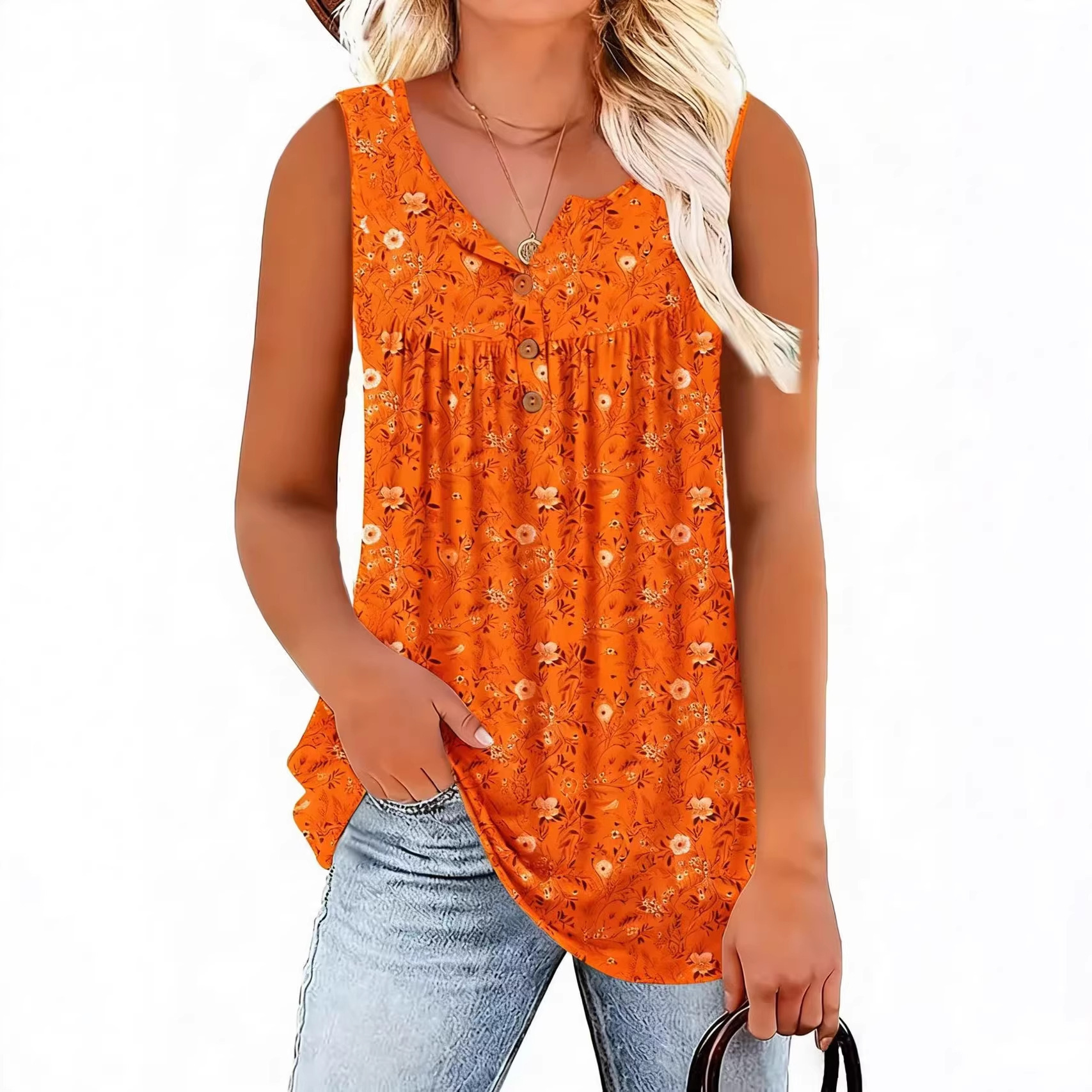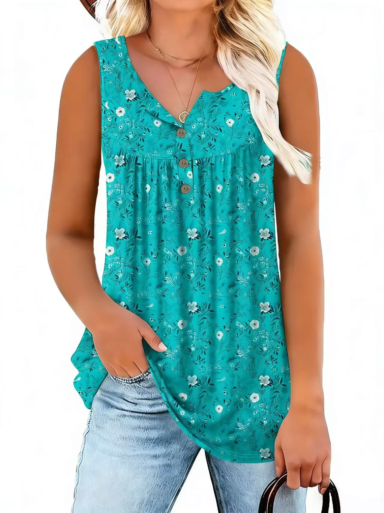 소원 유럽과 미국의 ebay2025 새로운 여름 작은 꽃 인쇄 둥근 목 니트 민소매 조끼 탑 여성