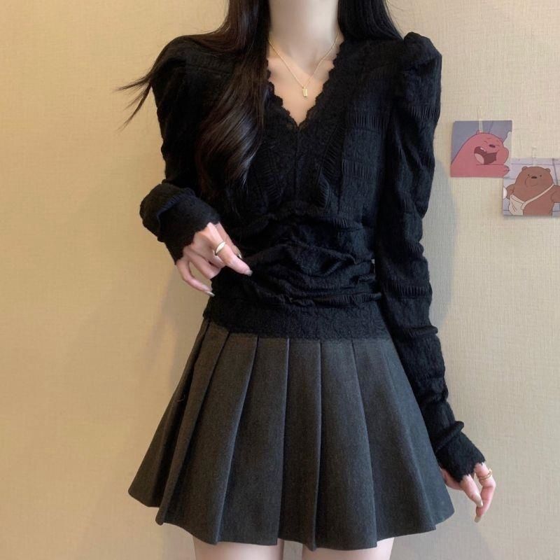 봄 2025 새로운 한국 스타일 내베이스 지방 슬리밍 프랑스 칼라 유럽 레이스 셔츠 탑스토어 가기