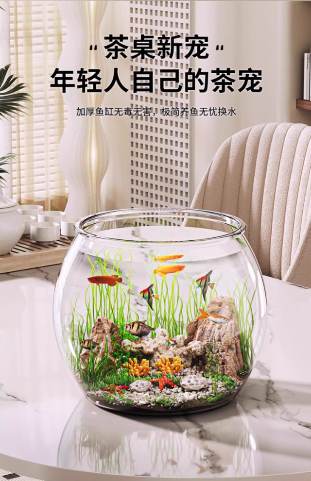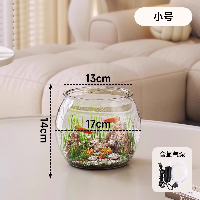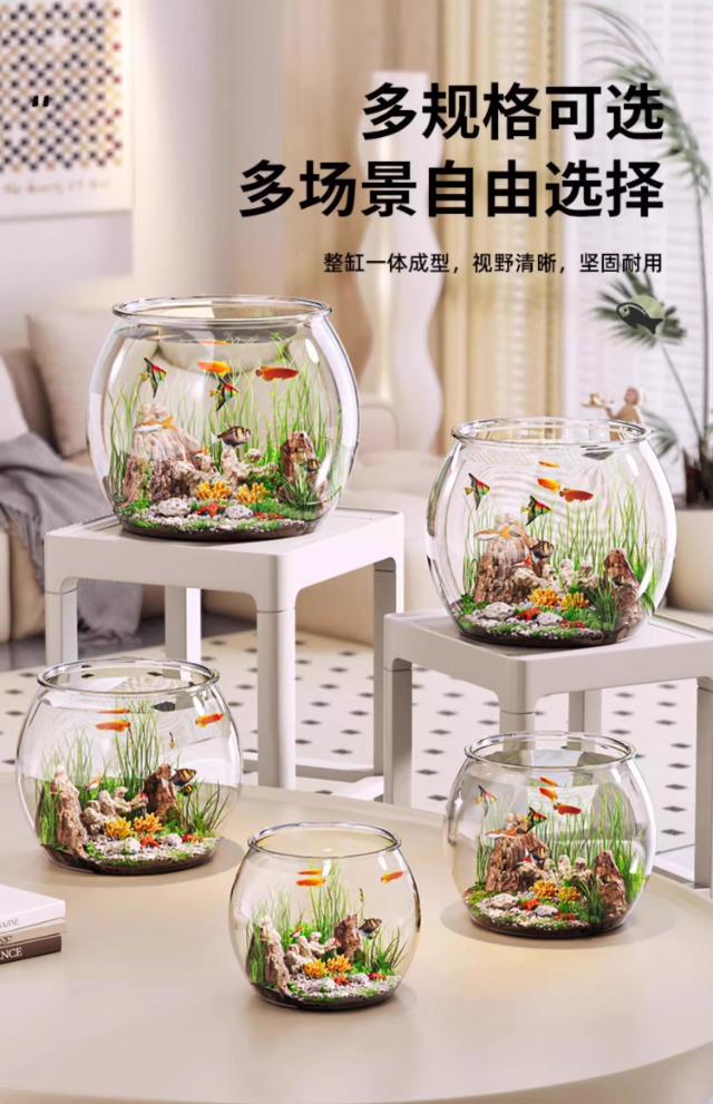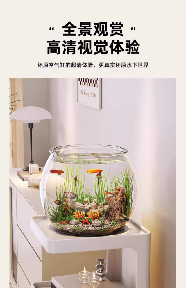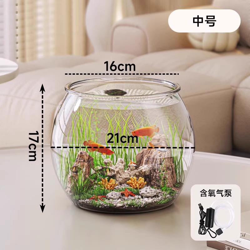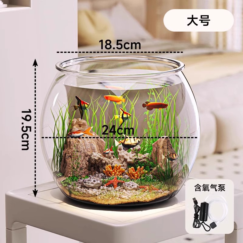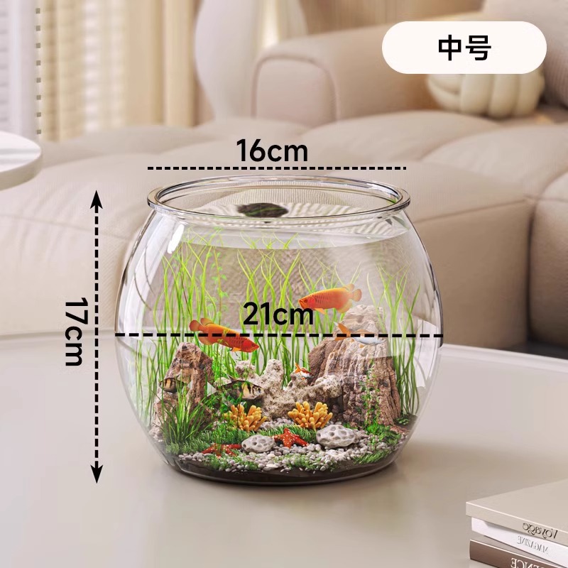 탁상용 생태 어항, 내구성 강하고 깨지지 않는 플라스틱 원형 가정용 금붕어 사육 어항, 열대어 수족관스토어 가기