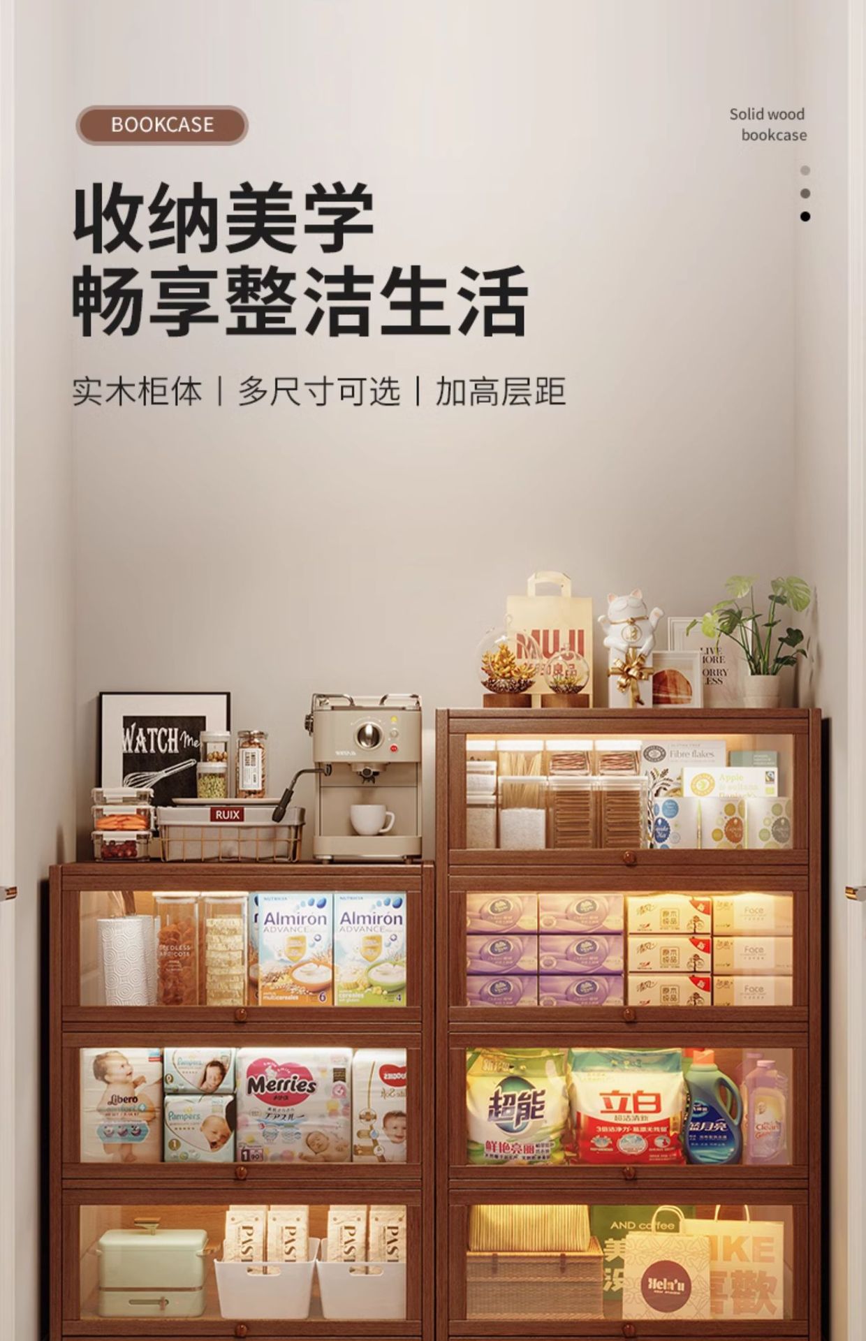 实木收纳柜储物柜子家用儿童防尘置物架客厅转角展示带门多层书柜