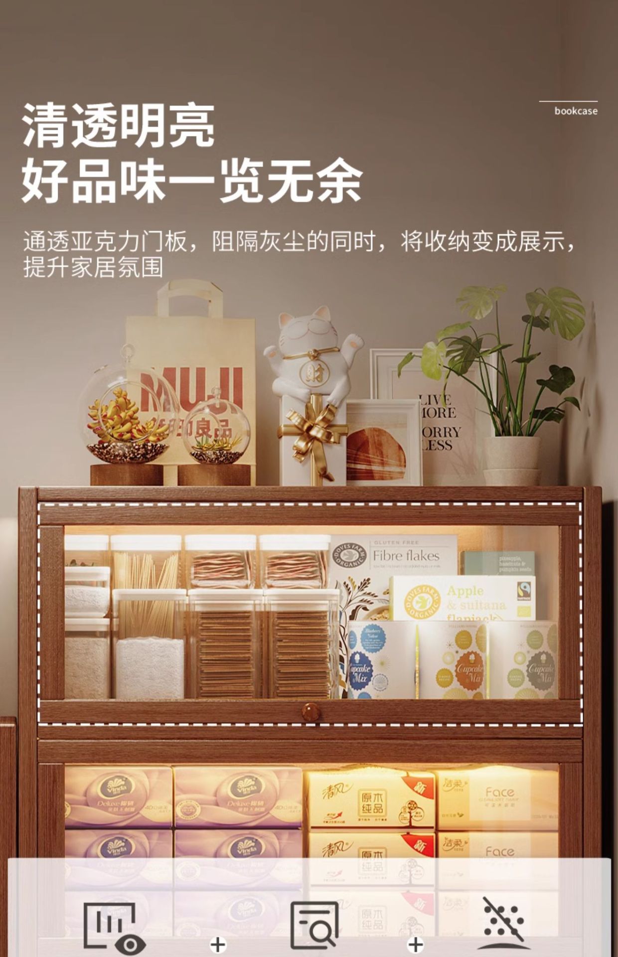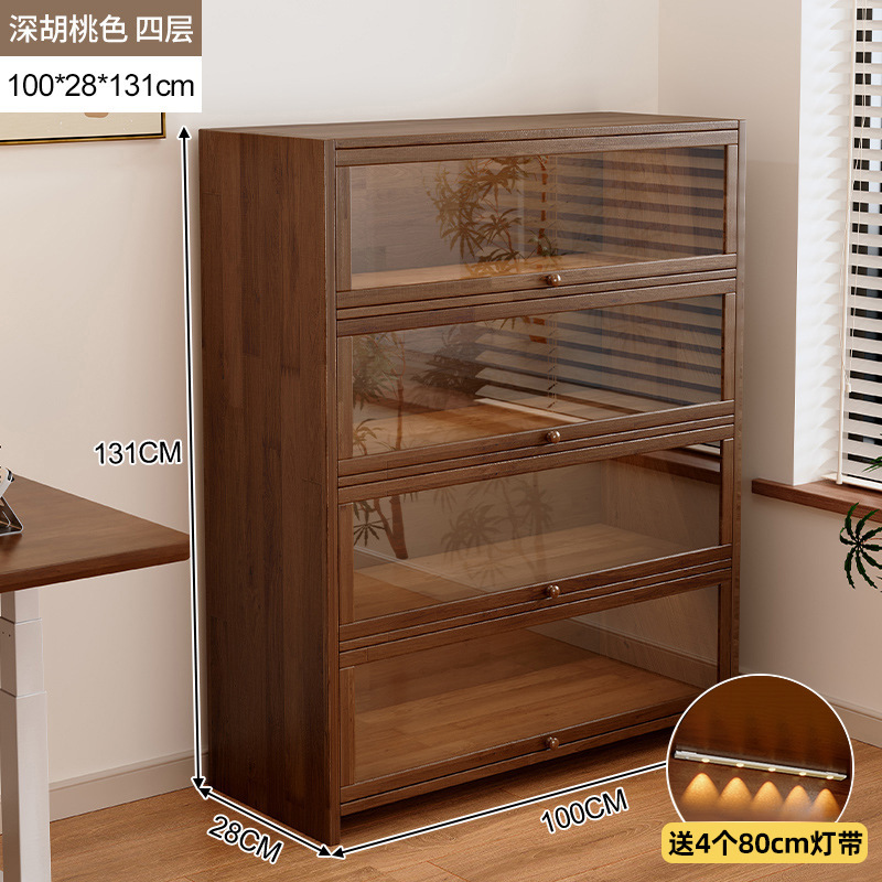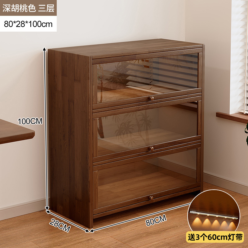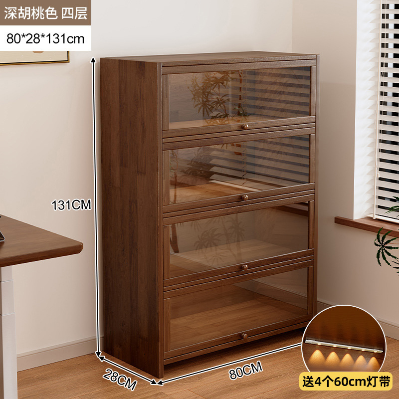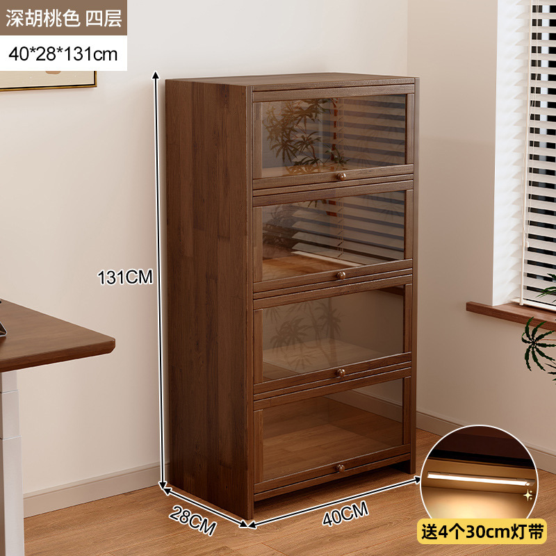 단단한 나무 저장 캐비닛 저장 캐비닛 가정용 어린이 방진 저장 랙 거실 코너 디스플레이 문이있는 다층 책장