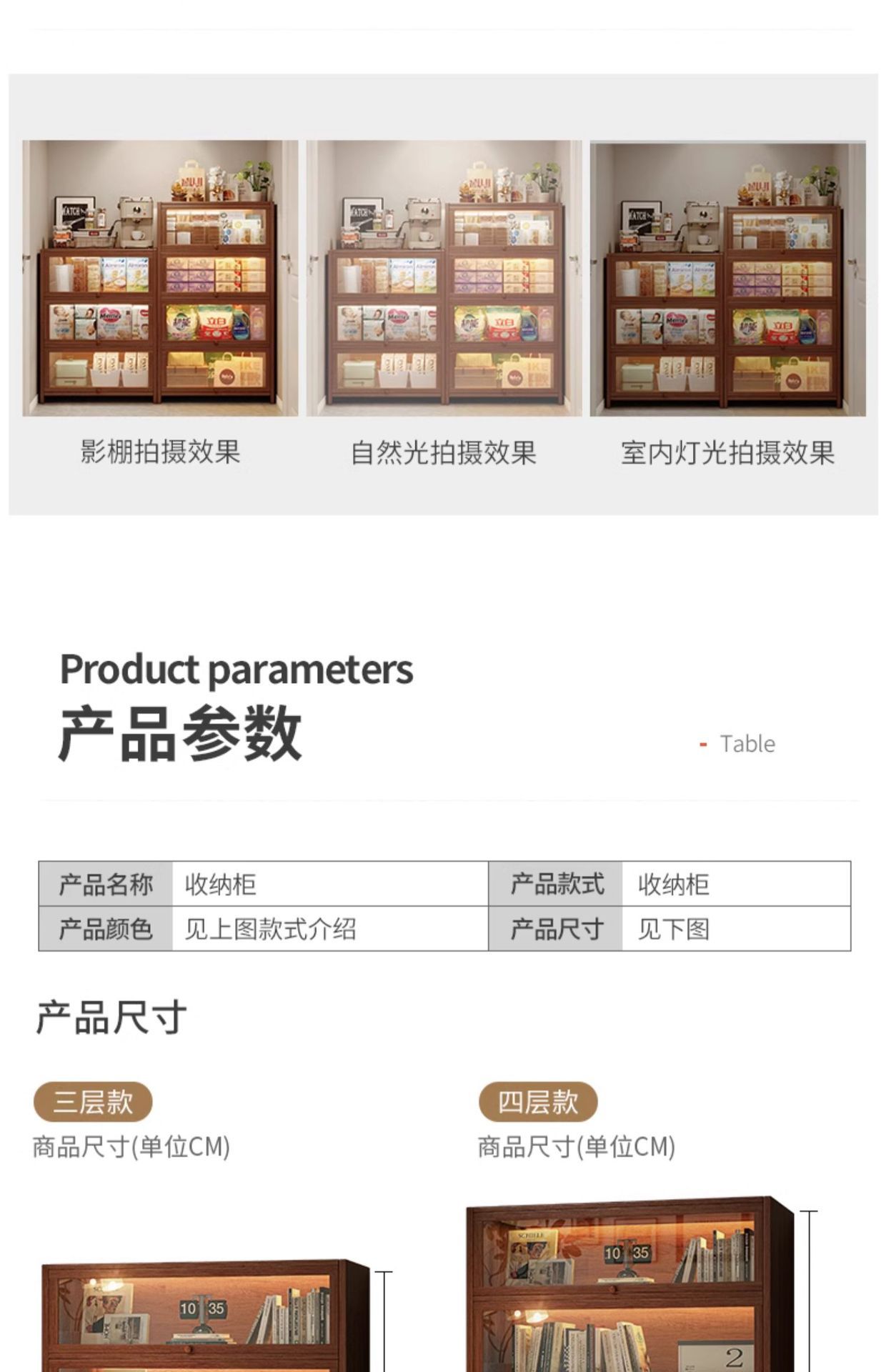• 원목 포함 무료 라이트 스트립 - 3겹 [길이 40 너비 28 높이 100] 검은 호두 색상 무료 30cm 라이트 스트립 3개