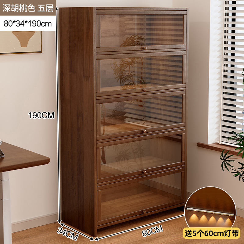 • 원목 포함 무료 라이트 스트립 - 5겹 [길이 80 너비 28 높이 163] 검은 호두 색상 무료 60cm 라이트 스트립 5개