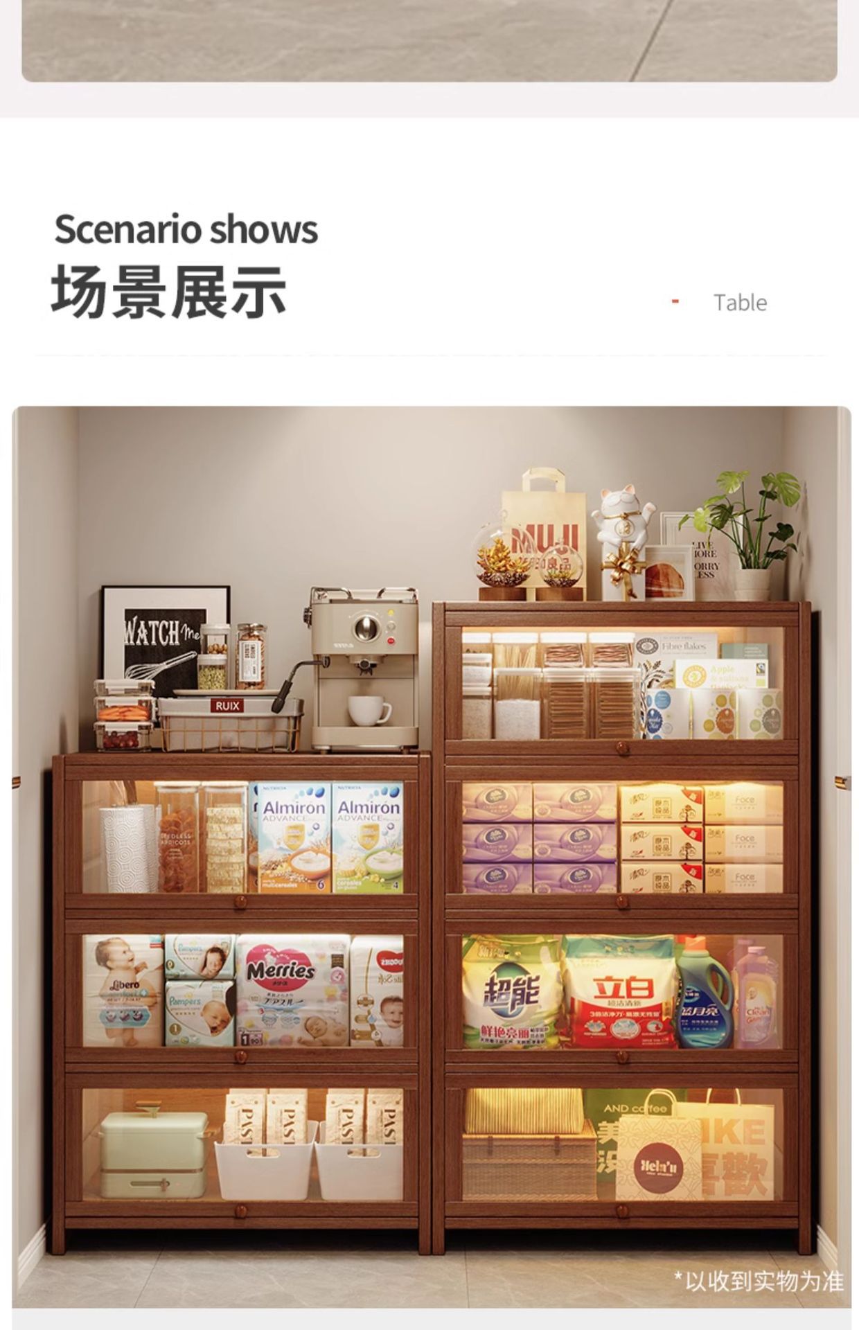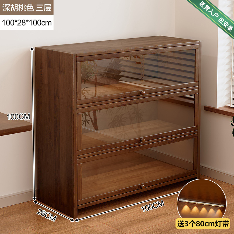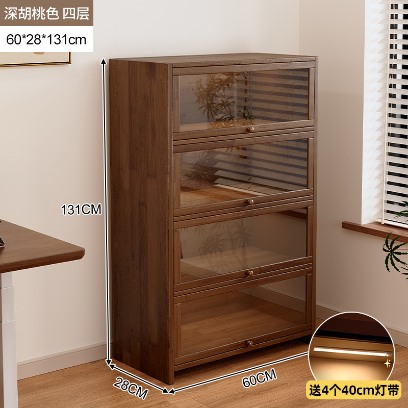단단한 나무 저장 캐비닛 저장 캐비닛 가정용 어린이 방진 저장 랙 거실 코너 디스플레이 문이있는 다층 책장스토어 가기