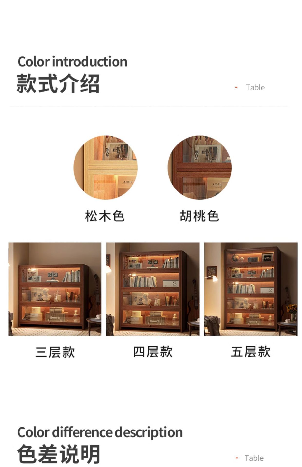 • 원목 포함 무료 라이트 스트립 - 5겹 [길이 60 너비 28 높이 163] 검은 호두 색상 무료 40cm 라이트 스트립 5개
