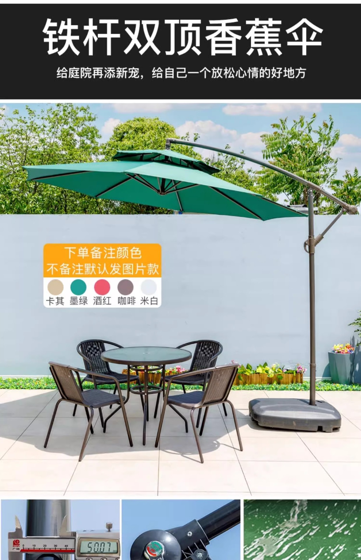 • 철제 이중 지붕 - 직경 2.7m 바나나 우산 + 80kg 물과 모래 채우기 베이스