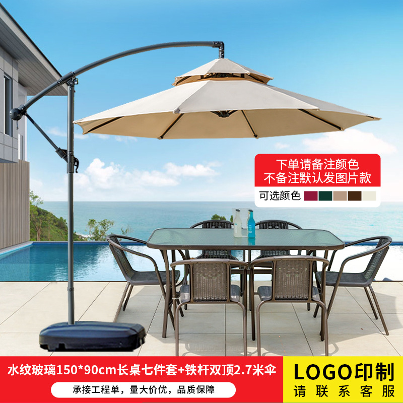 • 물무늬유리 150*90cm 롱테이블 7종세트 + 철제 더블탑우산 2.7m개