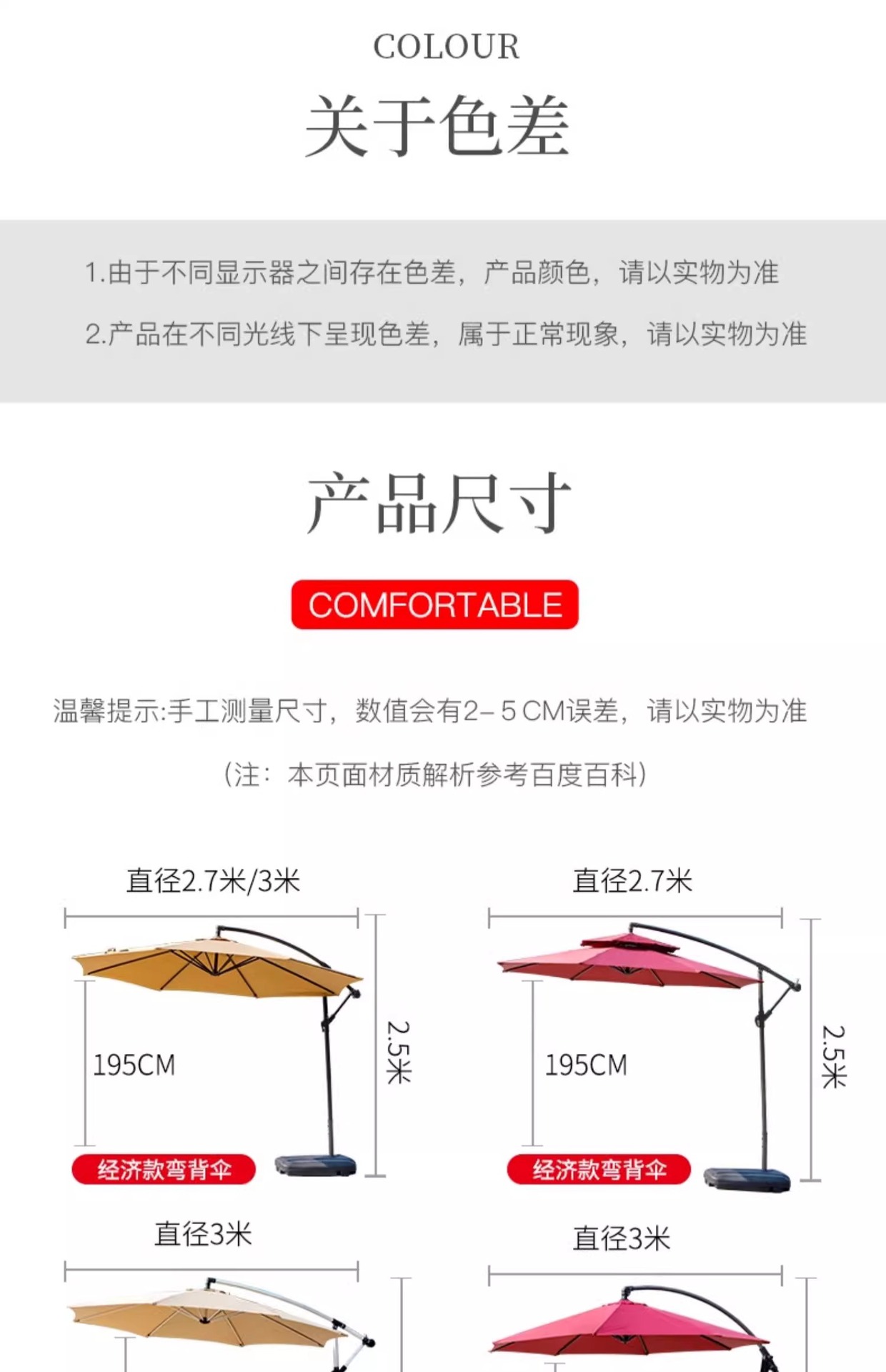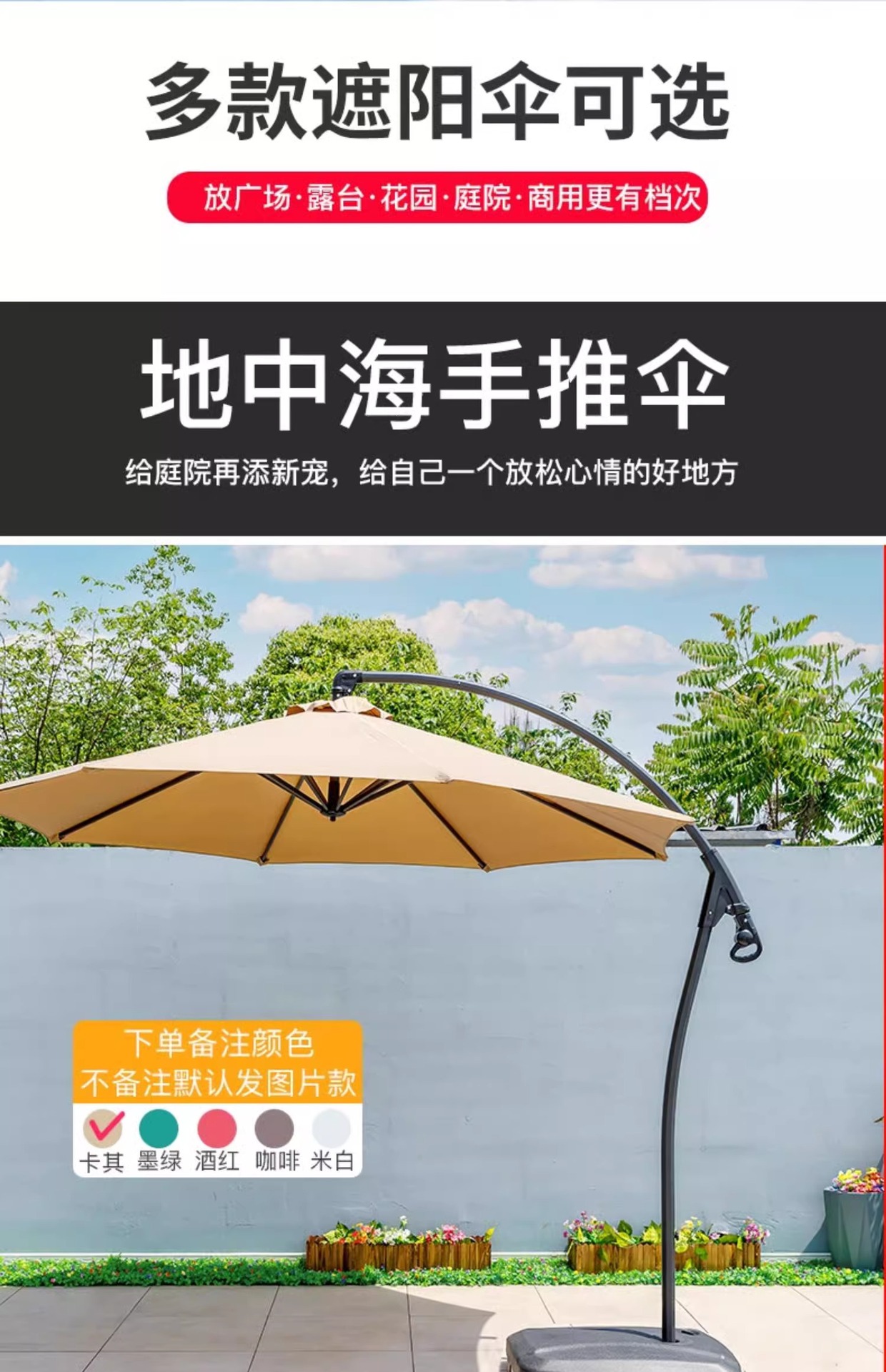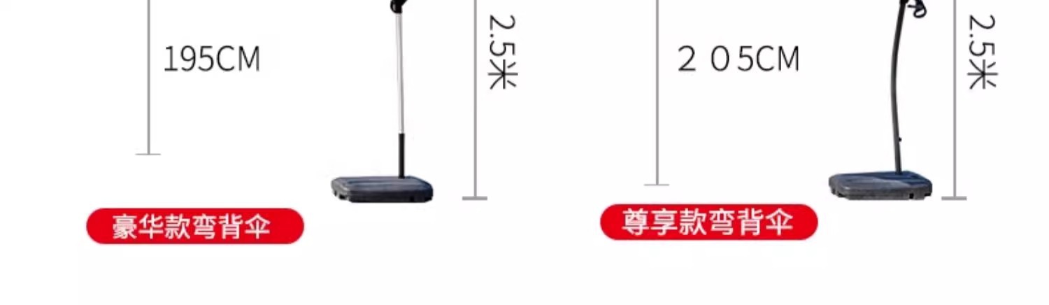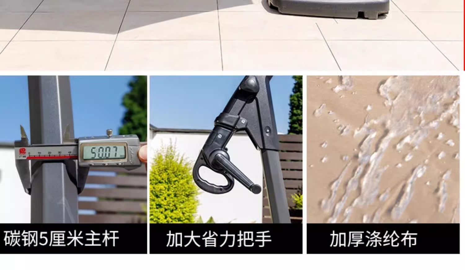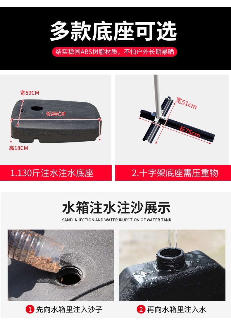 • 철제 단일 상단 - 직경 2.7m 바나나 우산 + 80kg 물과 모래 채우기 베이스