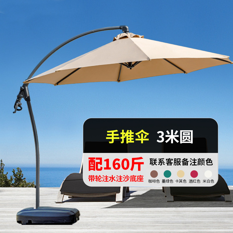 • 지중해식 핸드 푸시 우산 원형 3m + 80kg 물과 모래가 채워진 베이스