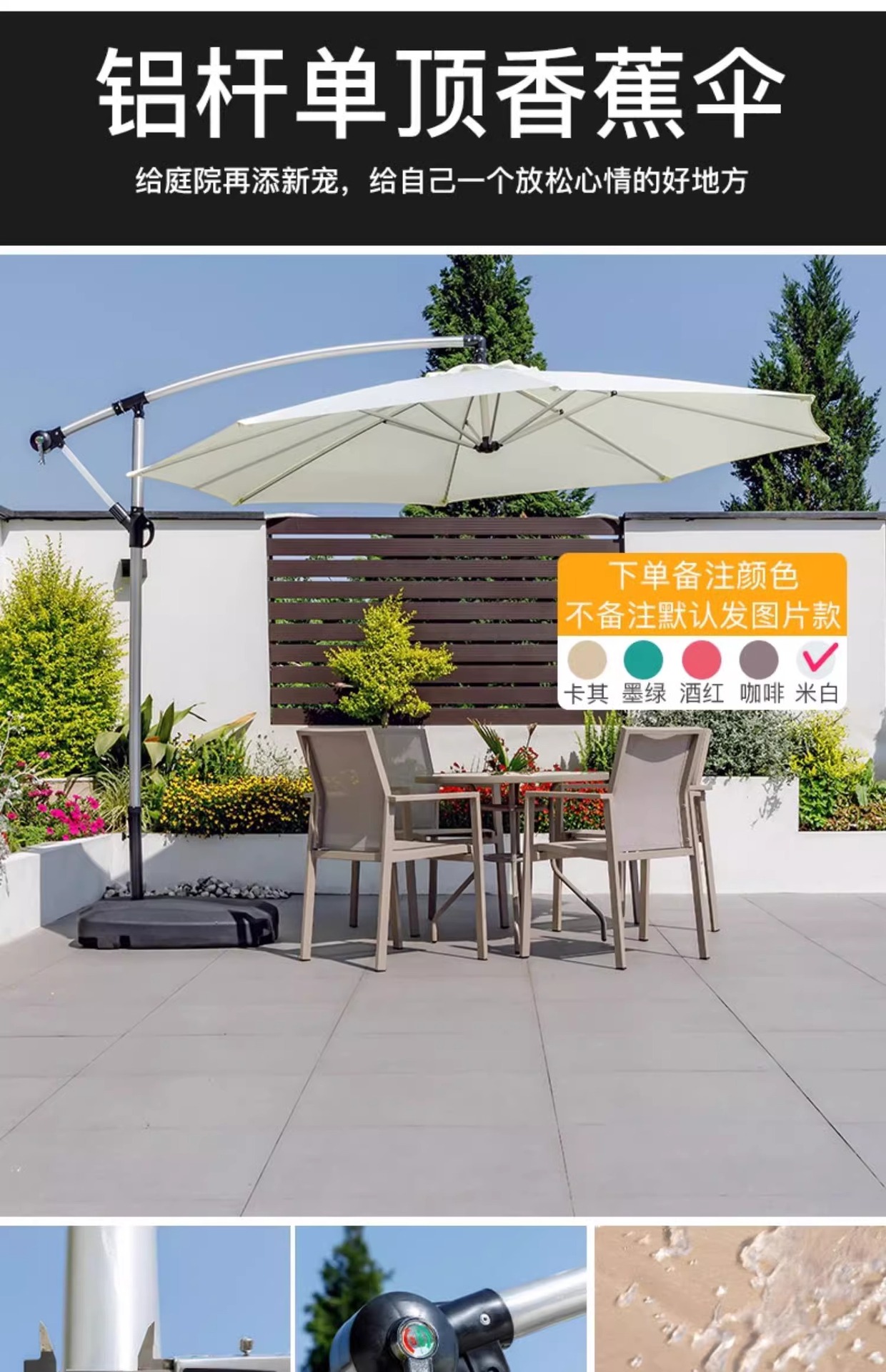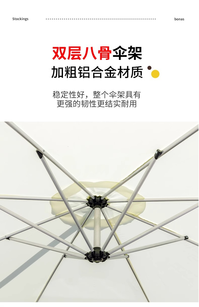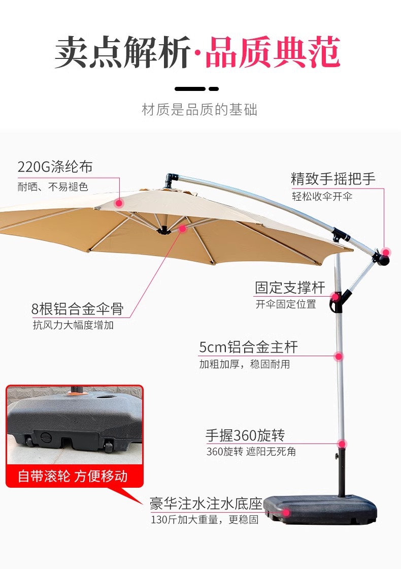 • 알루미늄 기둥 단일 상단 직경 3m 바나나 우산 + 80kg 물 및 모래 채우기 베이스